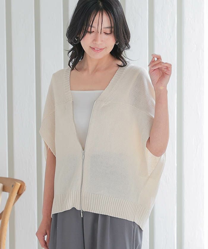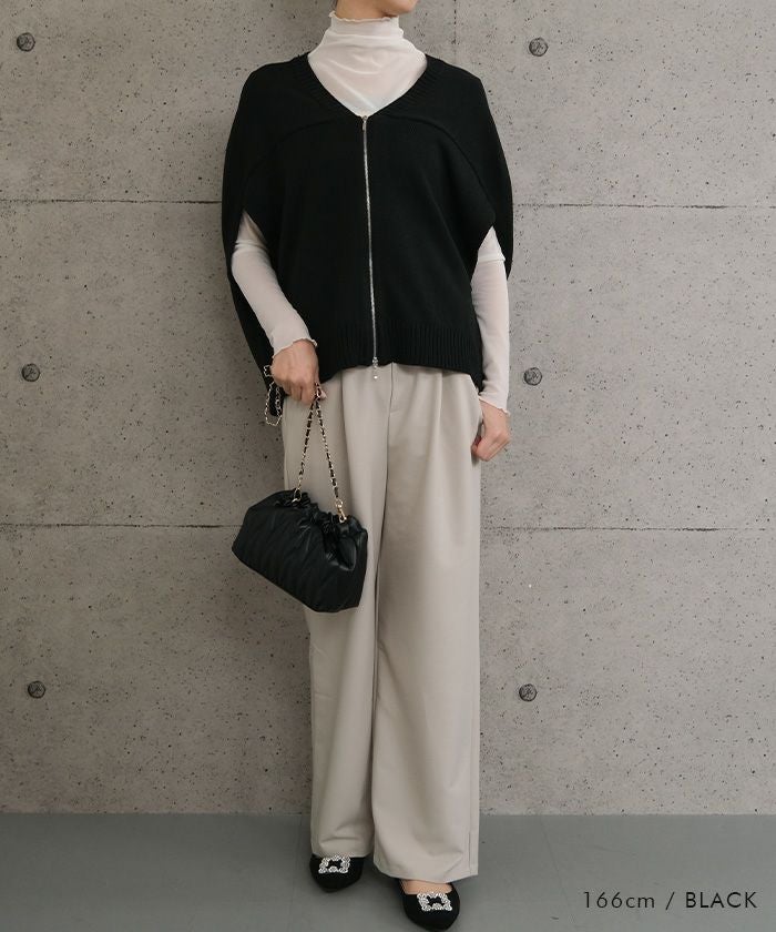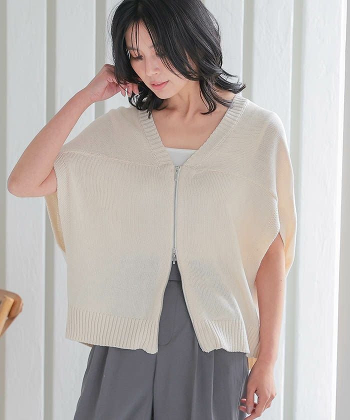 • レイヤードで楽しむ、ダブルジップコクーンニットベスト