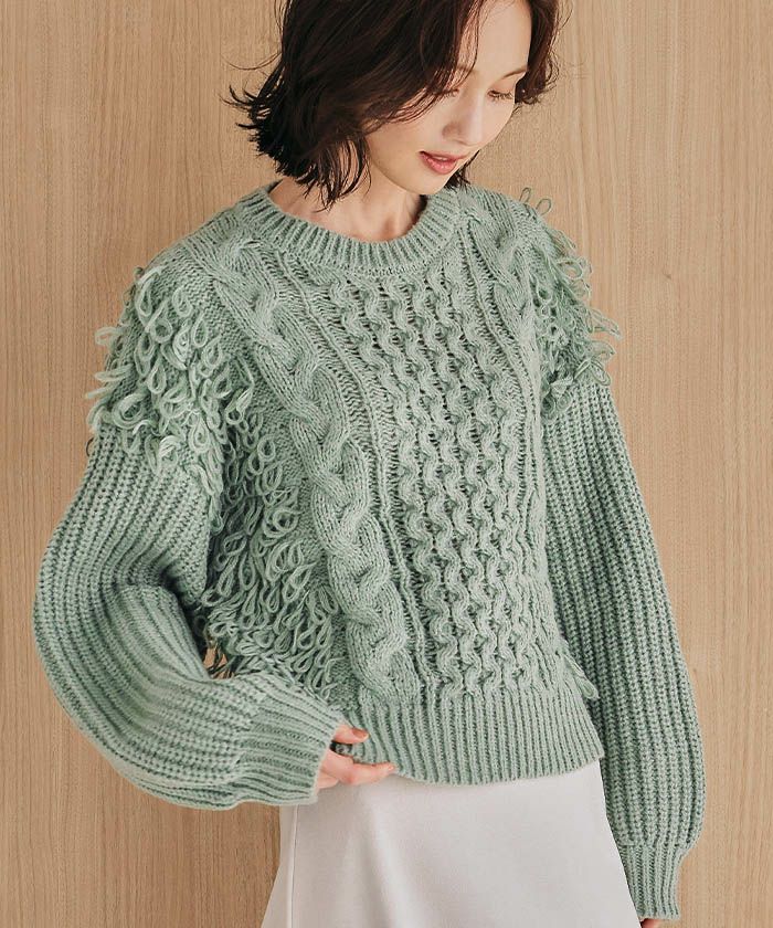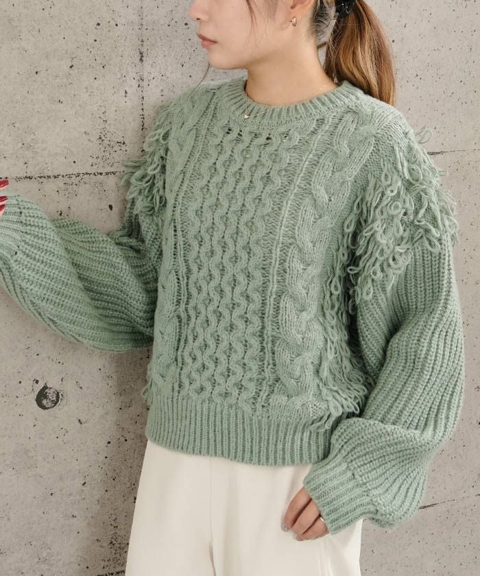 【最終値下げ価格】ループフリンジケーブル編みニットトップス 秋 冬 M レディース | アクアガレージ aquagarage