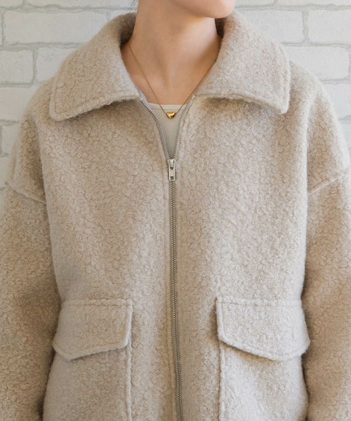 フェザーヤーン襟付きダブルジップリブニットカーディガン 春 秋 冬 | アクアガレージ aquagarage