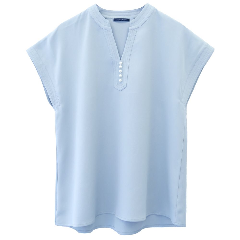 送料無料 パール釦キーネックブラウス 春 夏 秋 ≪ゆうメール便配送20・代引不可≫ | アクアガレージ aquagarage