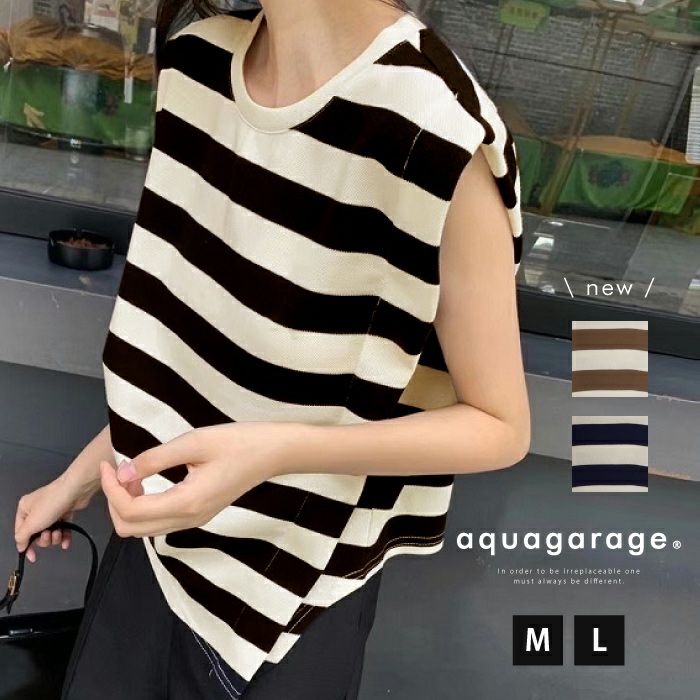 ボーダー柄ニットトップス レディース 春 秋 冬 長袖 | アクアガレージ aquagarage