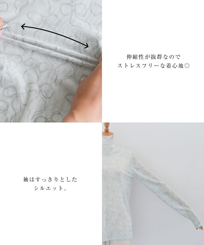 送料無料 リボン柄シアートップス 春 夏 秋 M レディース ≪ゆうメール便配送10・代引不可≫ | | アクアガレージ aquagarage