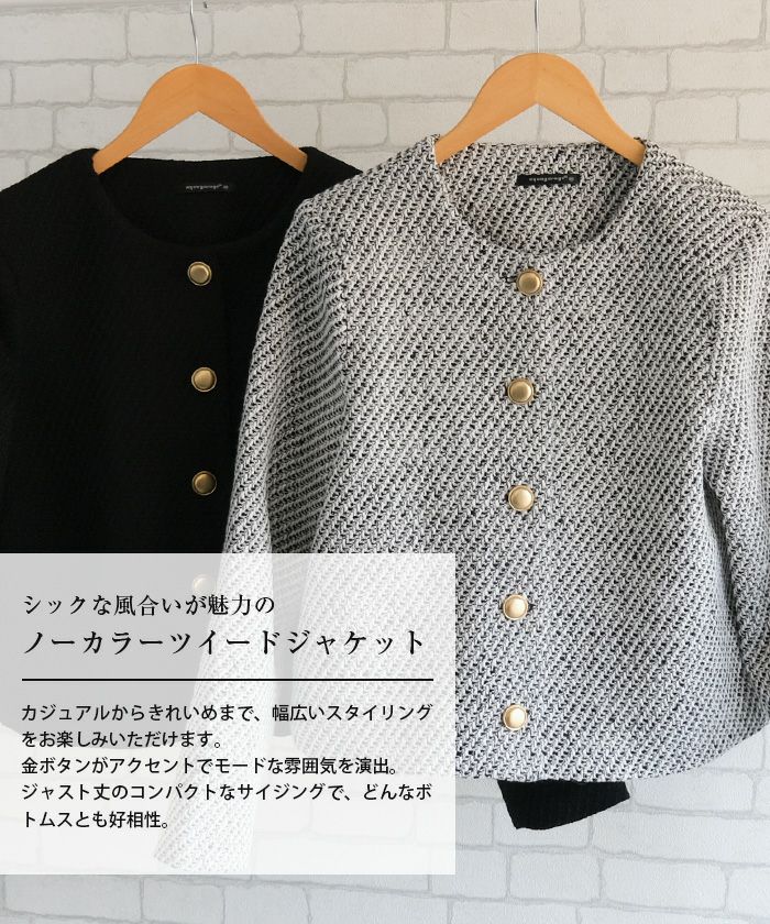送料無料 ノーカラーツイードジャケット レディース | アクアガレージ aquagarage