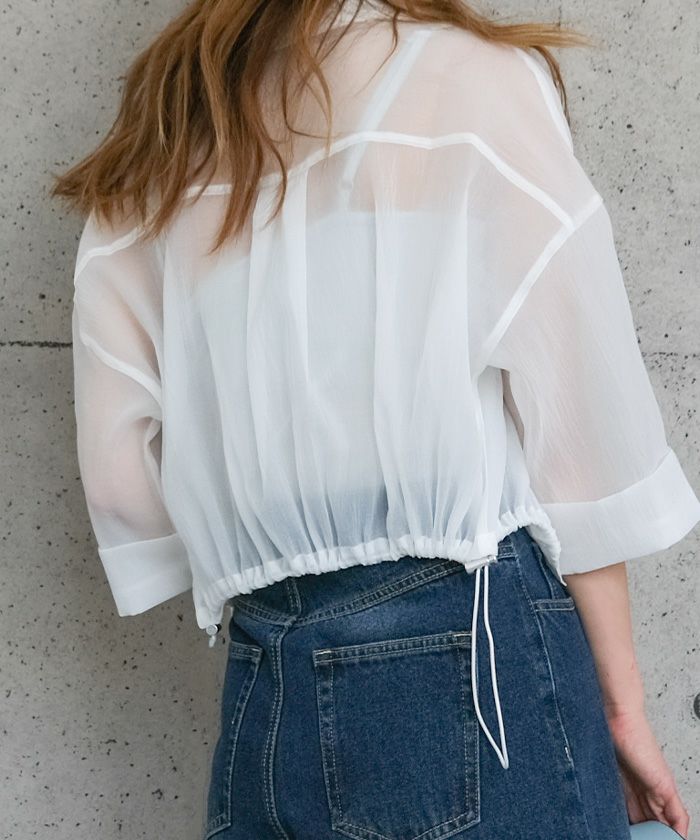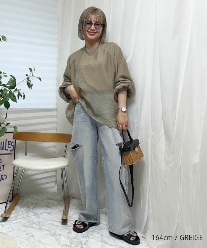 送料無料 裾ドロストワイドスリーブシアーシャツ レディース 春 秋 冬 ≪ゆうメール便配送20・代引不可≫| アクアガレージ aquagarage