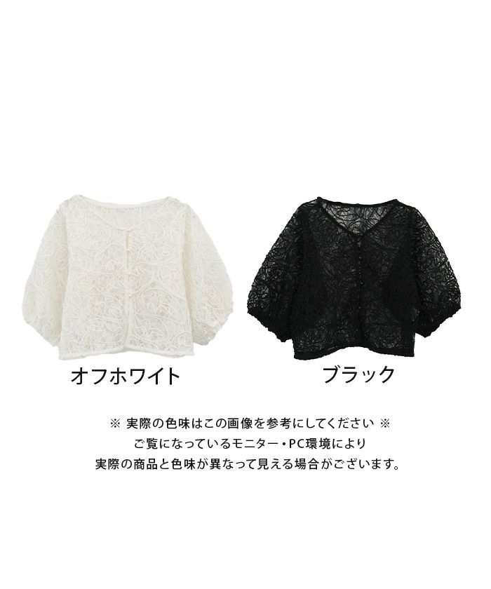 送料無料 コードレースパフスリーブ2wayカーディガン 春 夏 秋 ≪ゆうメール便配送20・代引不可≫ | アクアガレージ aquagarage