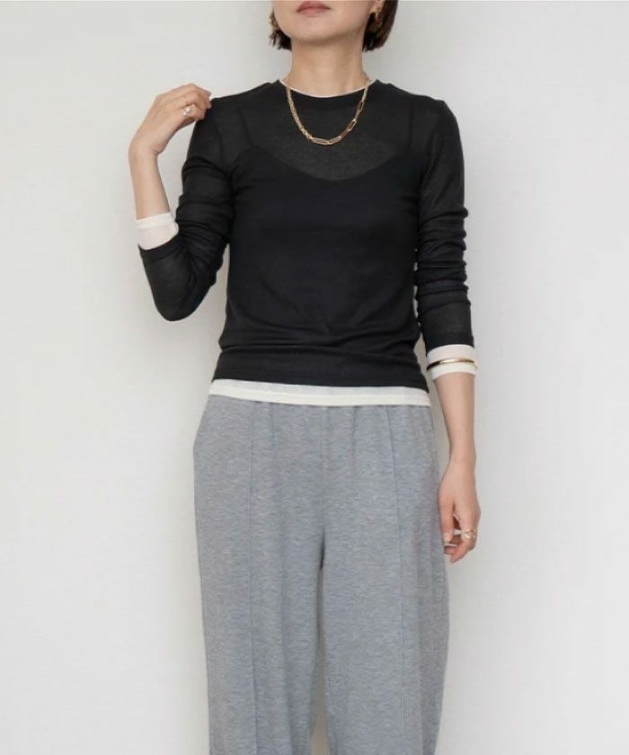 送料無料 配色レイヤード風シアートップス 春 秋 冬 M レディース ≪ゆうメール便配送10・代引不可≫ | | アクアガレージ aquagarage