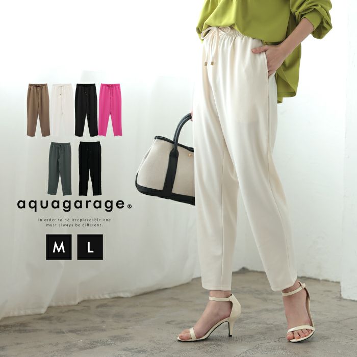 送料無料 梨地ウエストゴムテーパードパンツ レディース 春 夏 秋 M L ≪ゆうメール便配送30・代引不可≫ | アクアガレージ aquagarage