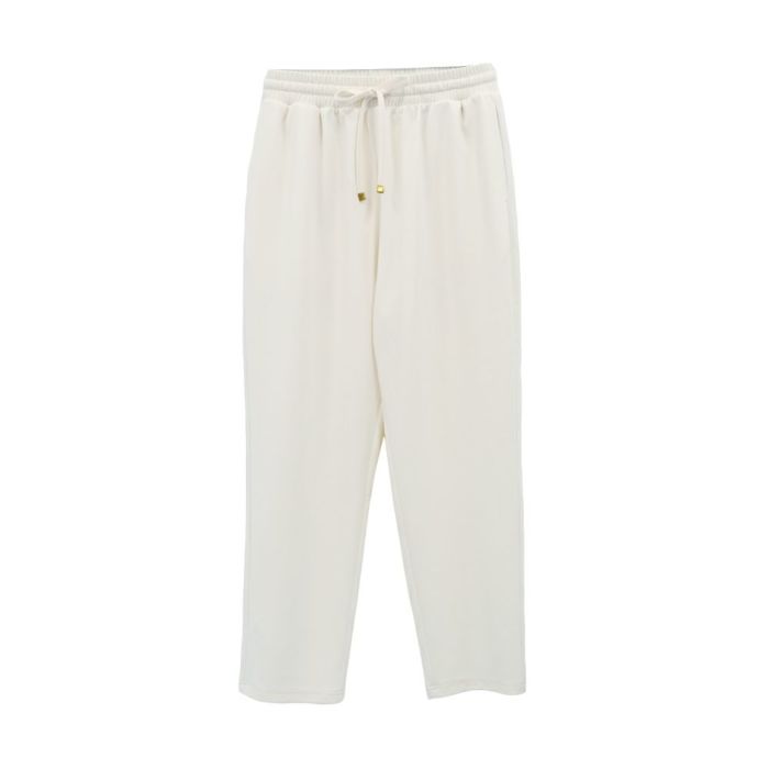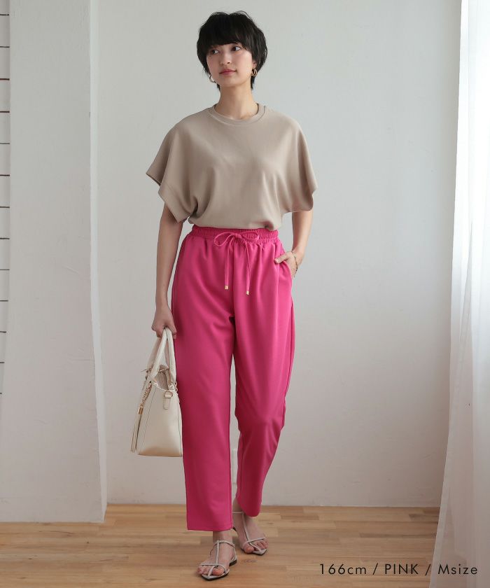 さらっとした梨地素材でロングシーズン使えるうえ、ウエストゴムで穿き心地ラクちん。