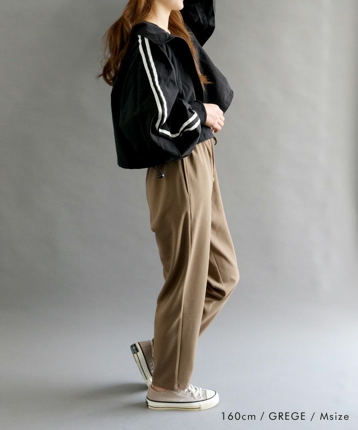 美脚見えと快適さを両立した、テーパードシルエットのパンツ。