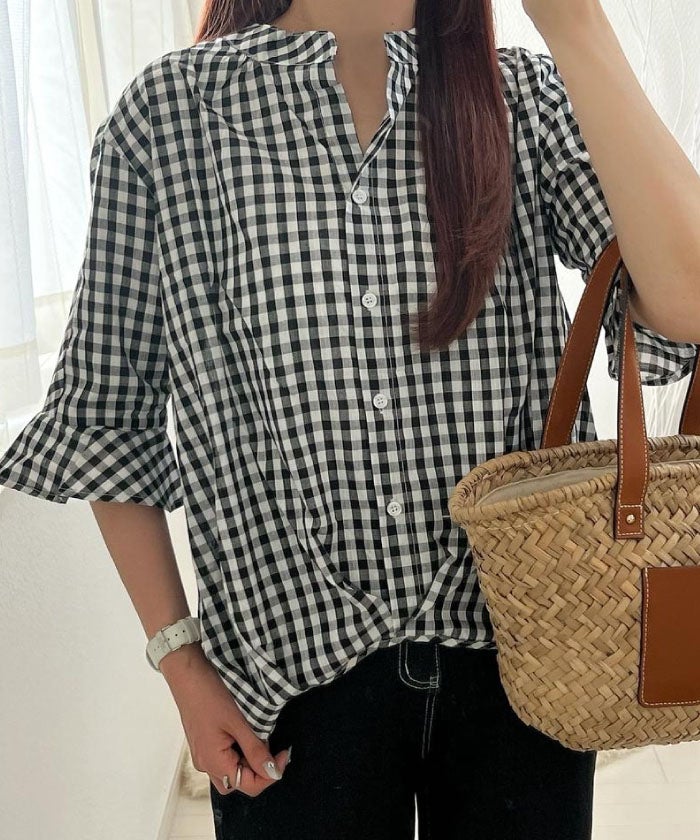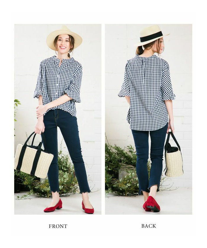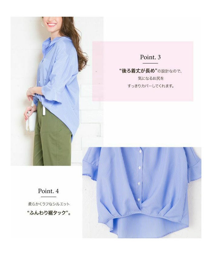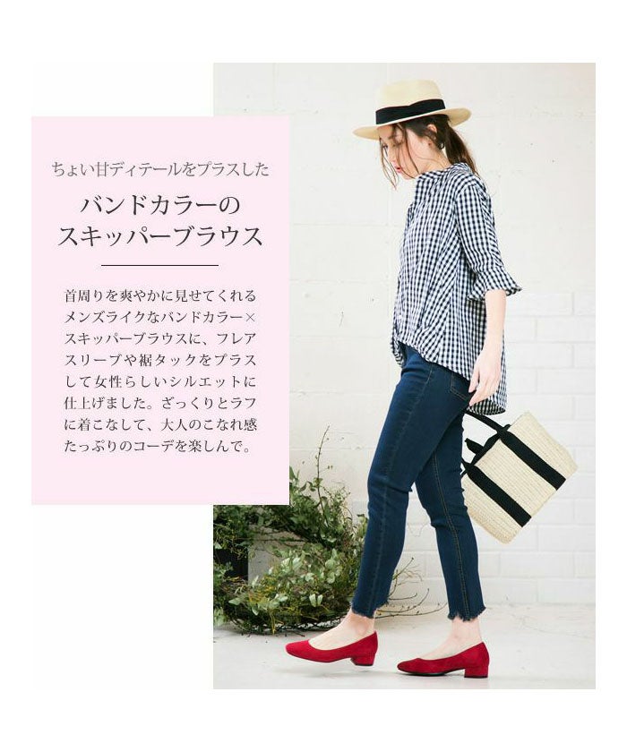 きれいめにもカジュアルにも使える、スキッパーデザインのブラウス。