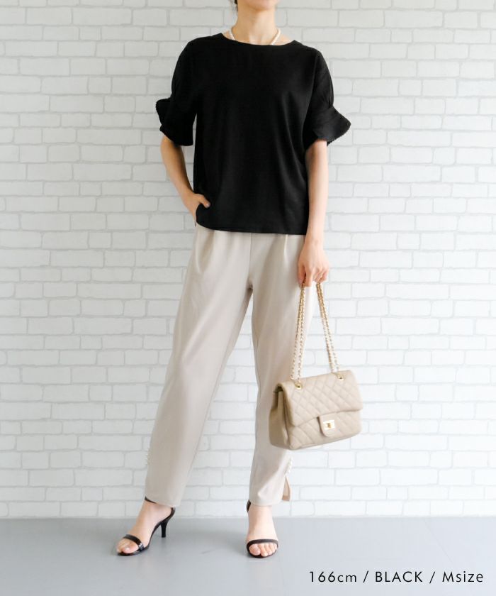 • 肩を包み込むようなフリル袖が二の腕をカバー。