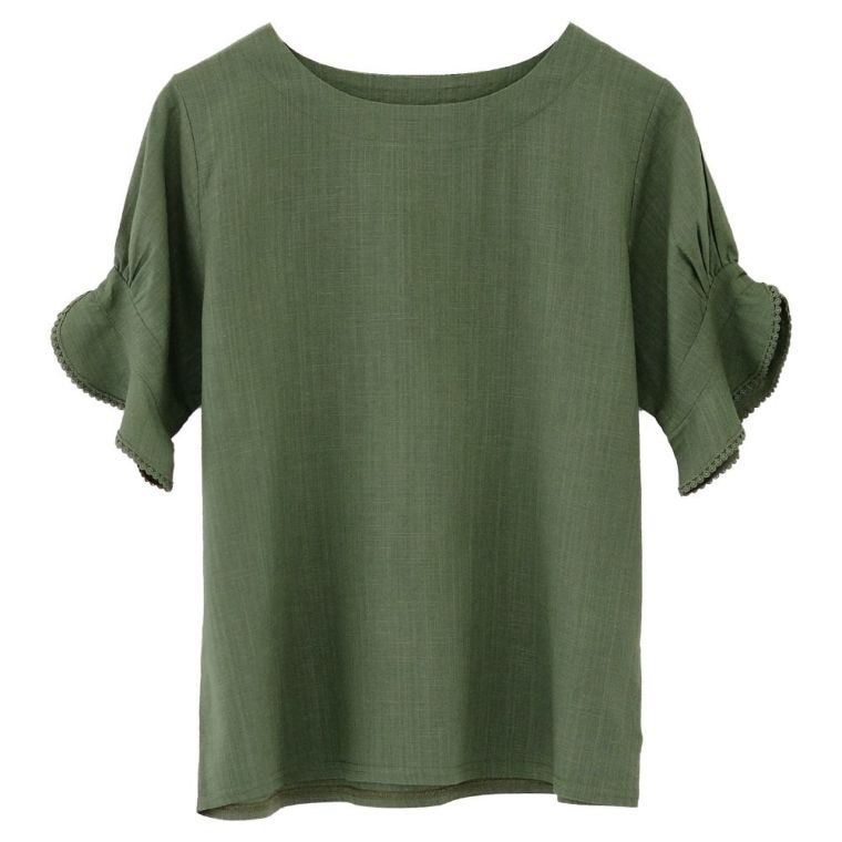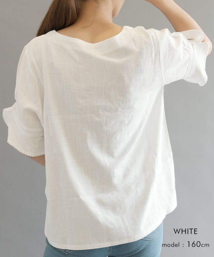 送料無料 フリル袖リネンブラウス 春 夏 秋 ≪ゆうメール便配送10・代引不可≫ | アクアガレージ aquagarage
