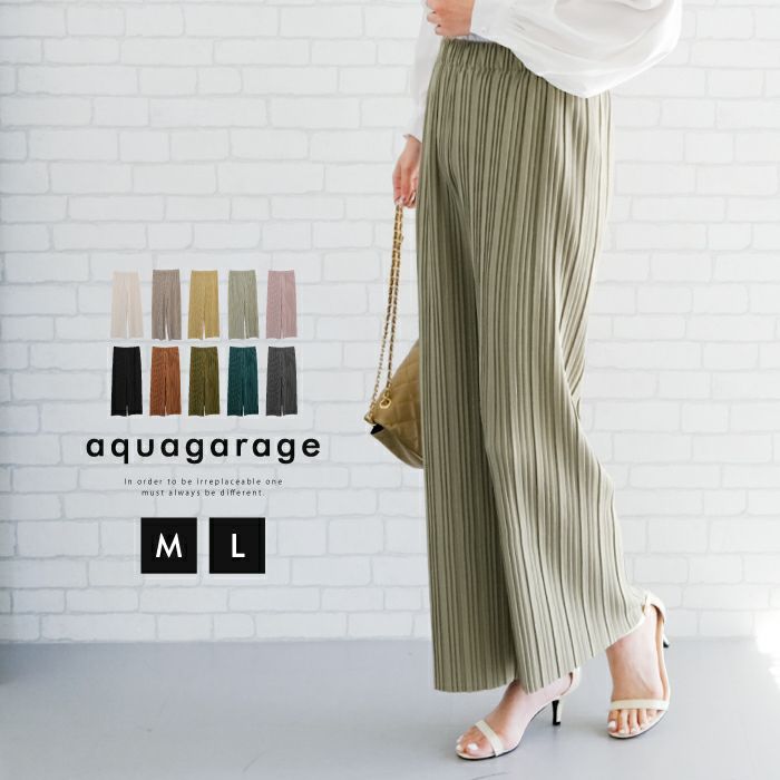 送料無料 ウエストゴムプリーツパンツ 春 夏 秋 M L |≪ゆうメール便配送30・代引不可≫アクアガレージ aquagarage