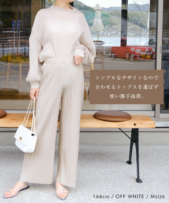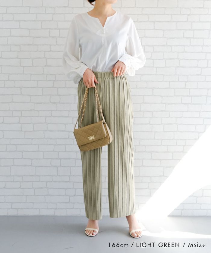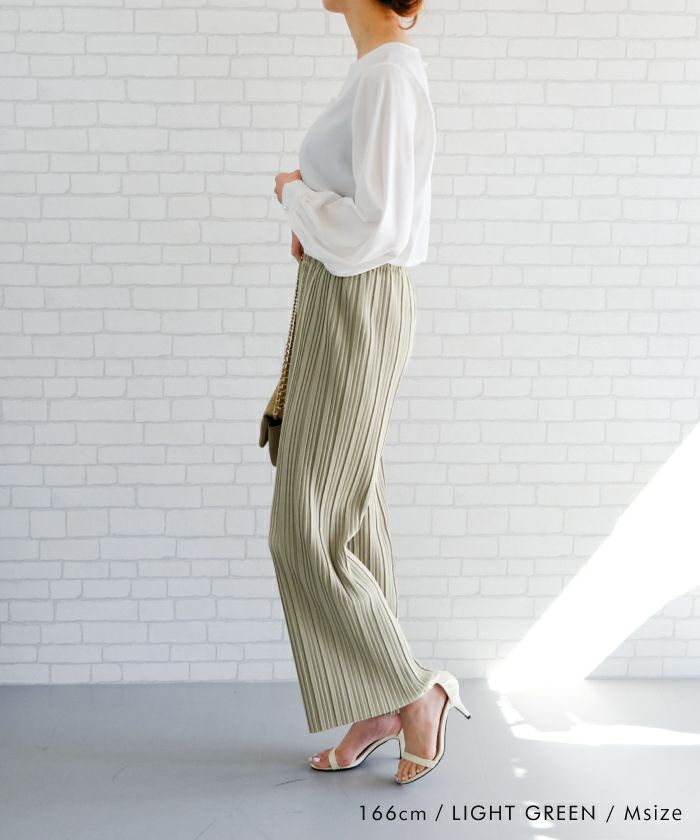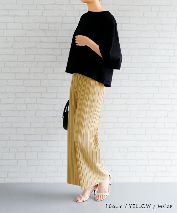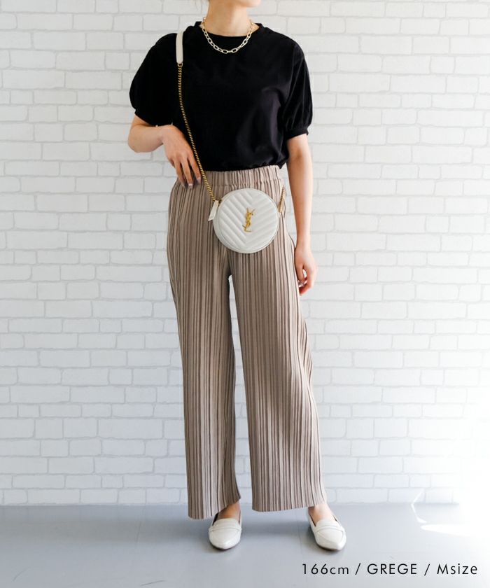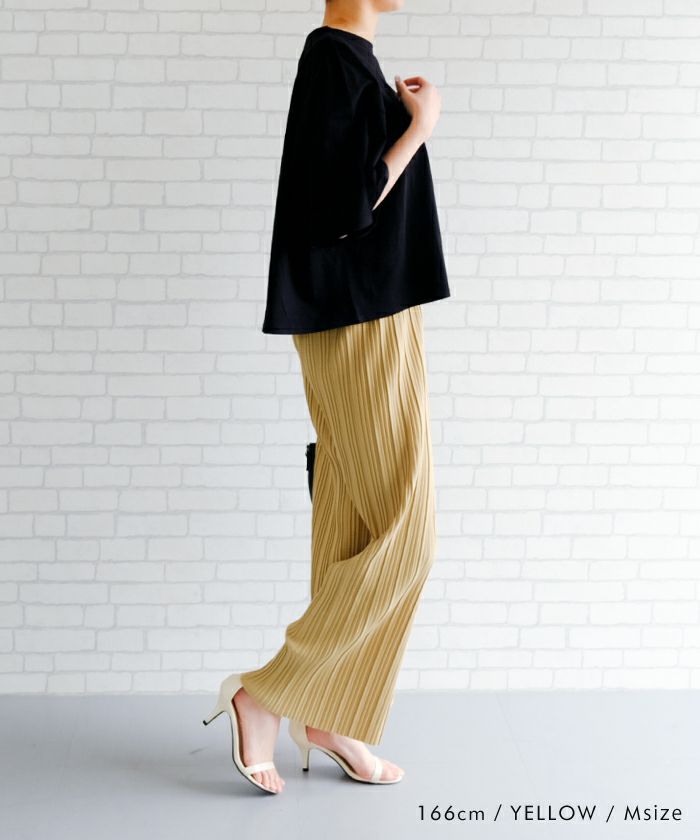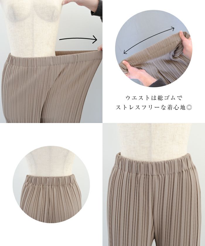 • ストンと落ち感ですっきり細見え♪ウエストゴムプリーツパンツ