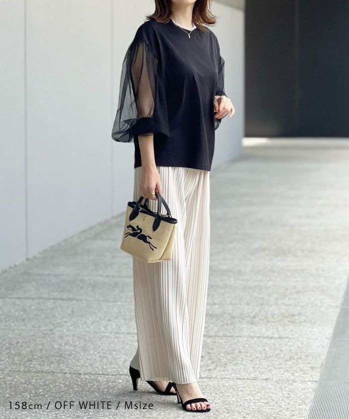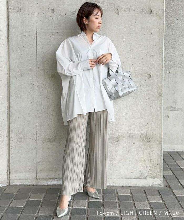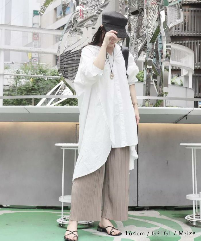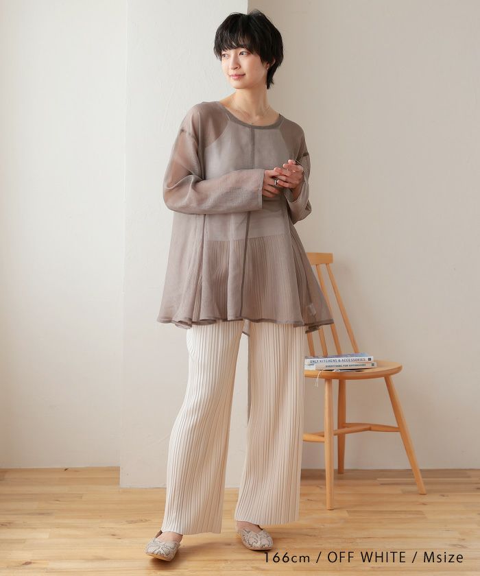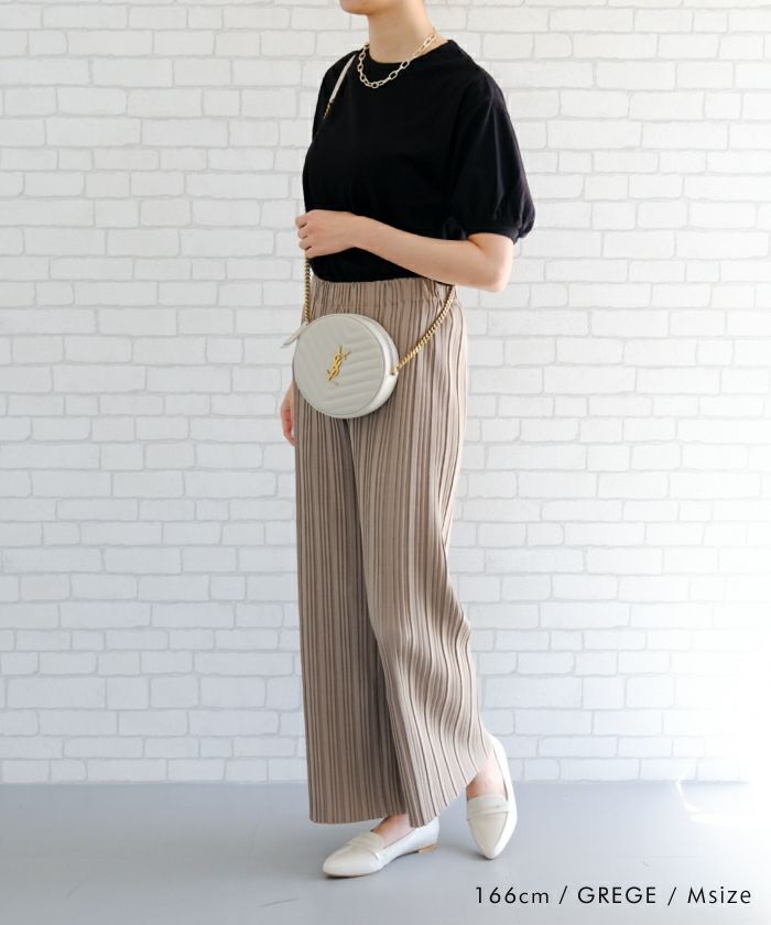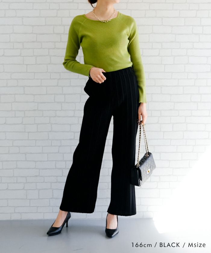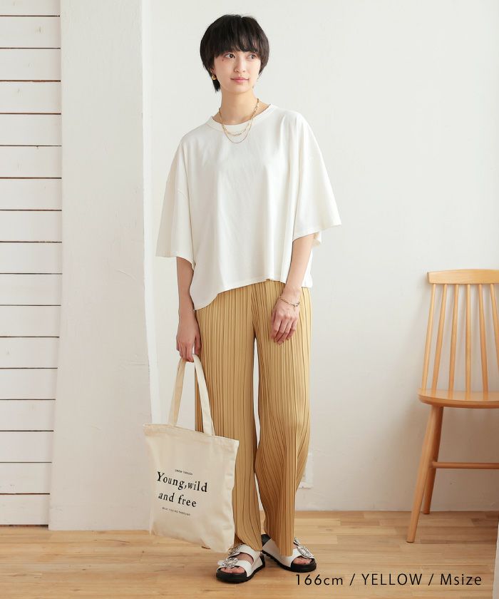 • ストンと落ち感ですっきり細見え♪ウエストゴムプリーツパンツ