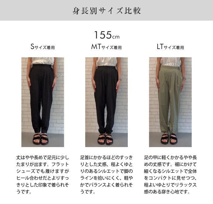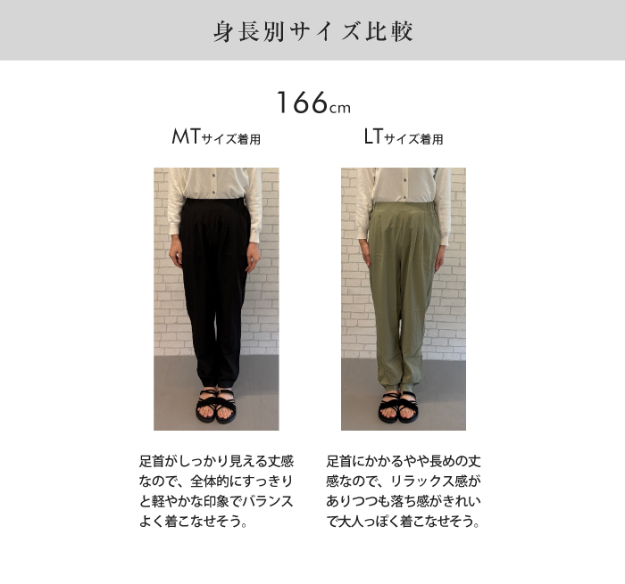 脚のラインを拾いすぎないゆとりのあるテーパードシルエット。