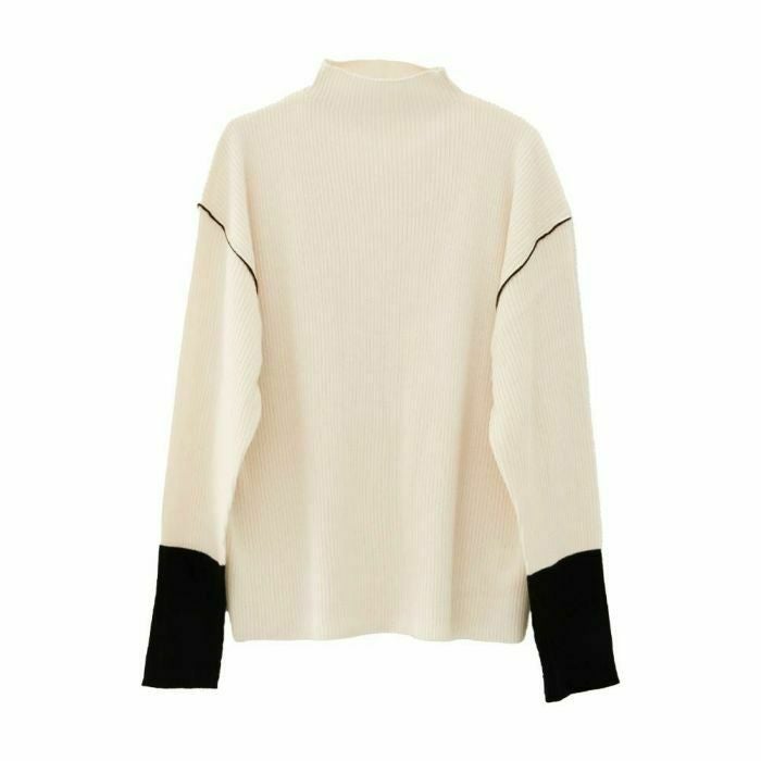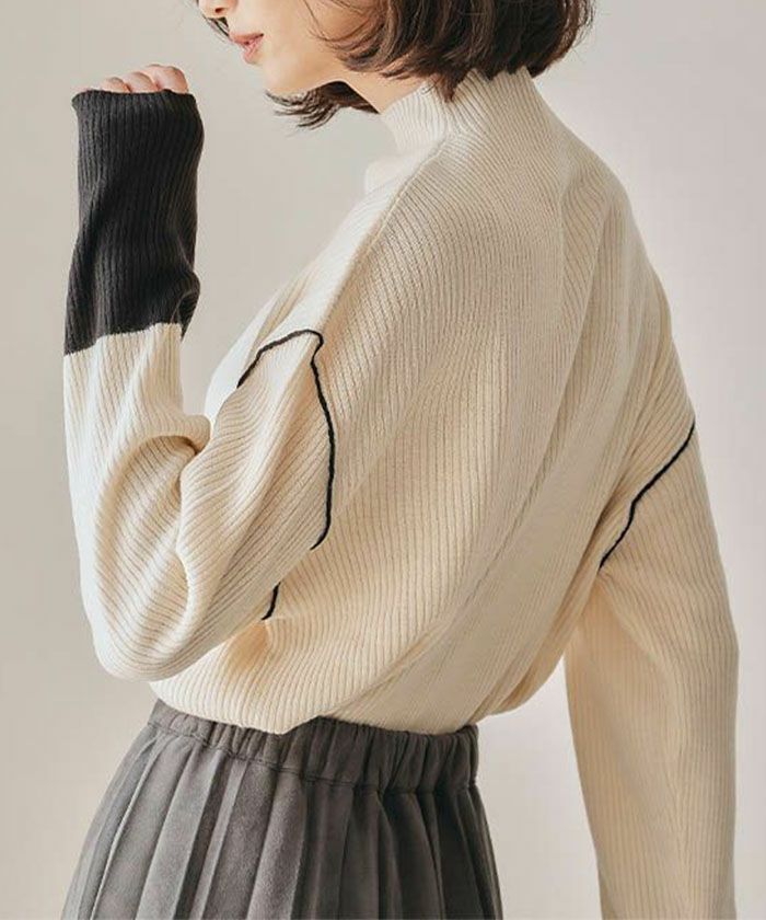 【ボトルネック配色リブニットトップス】