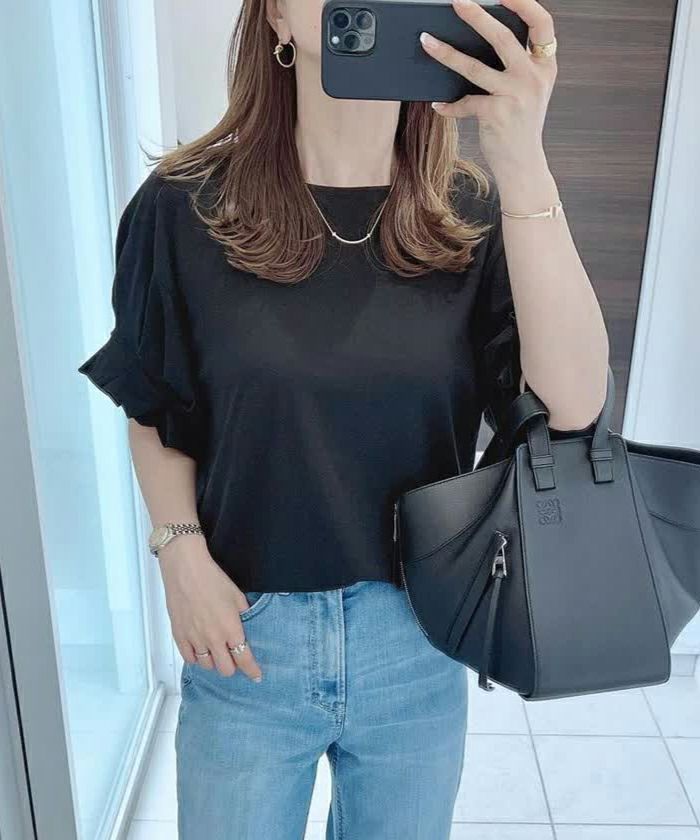 袖のフリルがとても可愛いです。腕の太さをカバーしてくれる優秀なカットソーです。在庫があるなら他の色も欲しかったです。