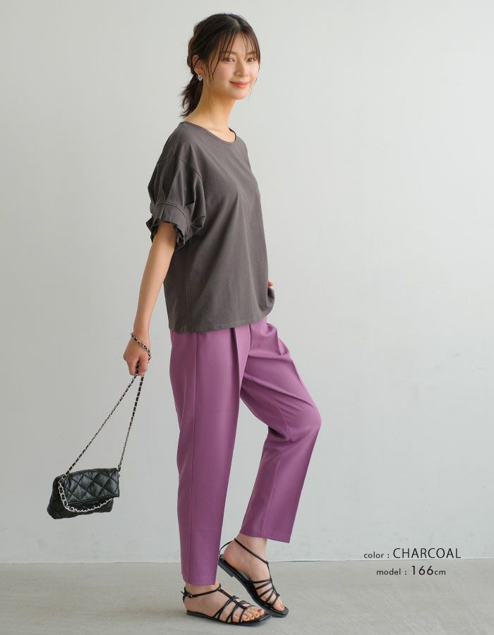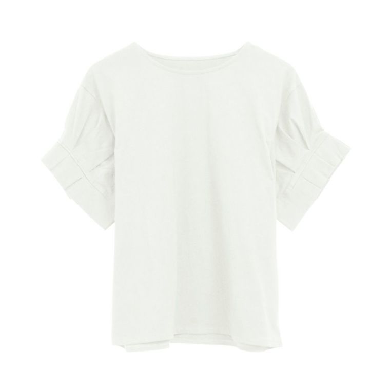 • 太めプリーツが目を引くデザインの袖プリーツカットソー。