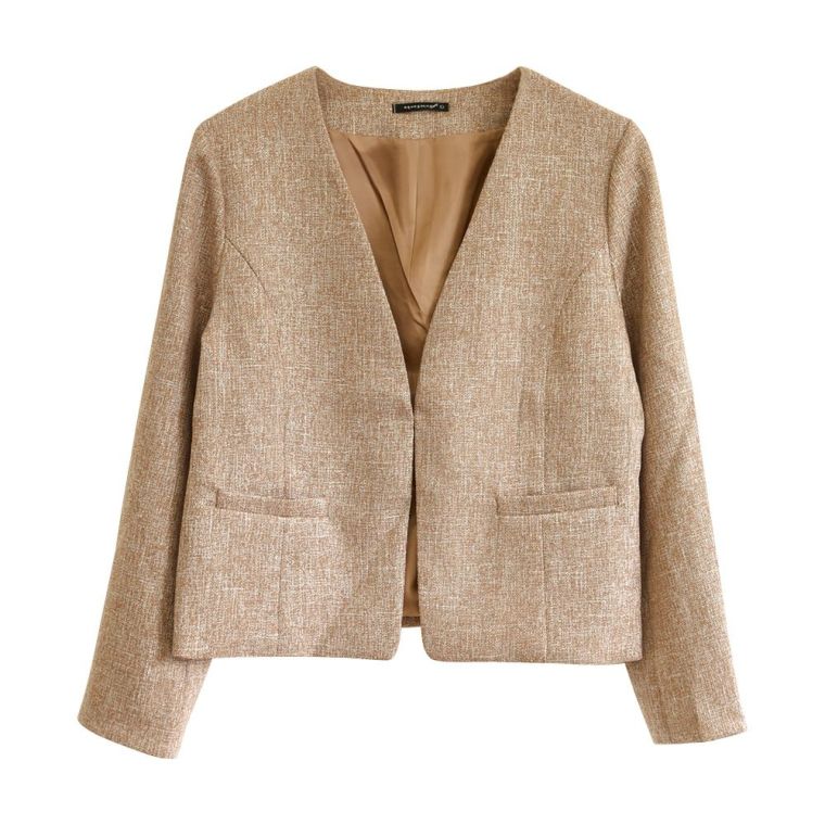 • 上品なノーカラーのコンパクト丈ツイードジャケット。
