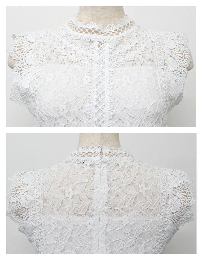 シアー素材 トップス ノースリーブ レース ブラウス レディース 春 夏 フレンチスリーブ スカラップレース プチハイネック スタンドカラー インナー 立ち襟 立ち衿 20_01wrbl 20_02wrbl■
