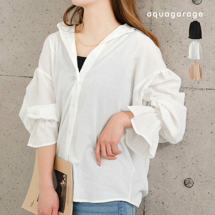 送料無料 楊柳袖ボリュームシャツ春 夏 秋 ≪ゆうメール便配送20・代引不可≫| アクアガレージ aquagarage