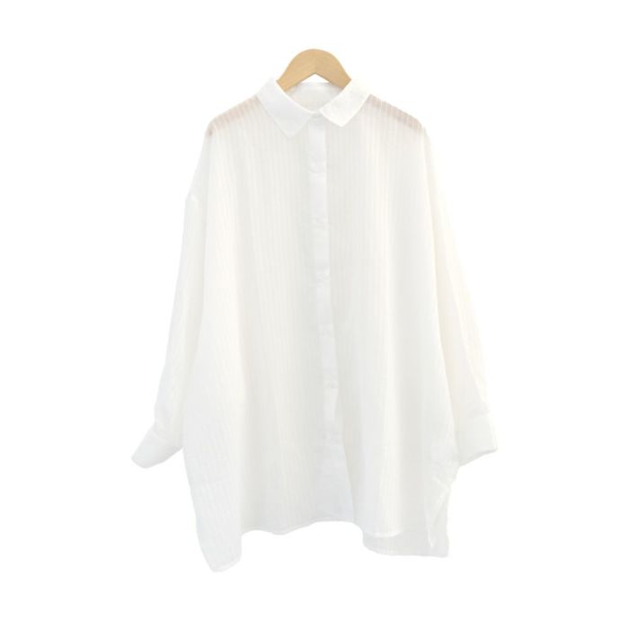 • シアーな透け感が魅力のストライプドルマンスリーブシャツ
