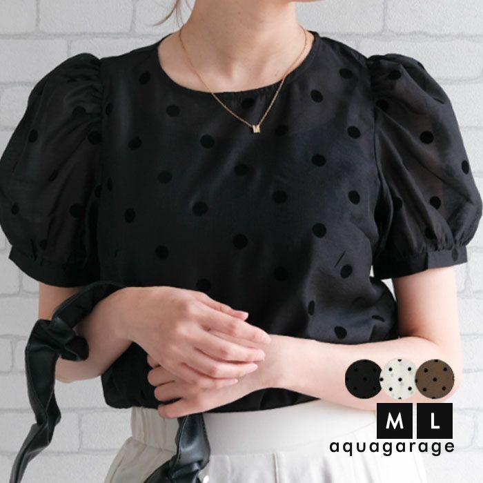 送料無料 ドット柄パフスリーブシアーブラウス 春 夏 レディース M L ≪ゆうメール便配送10・代引不可≫ | アクアガレージ aquagarage