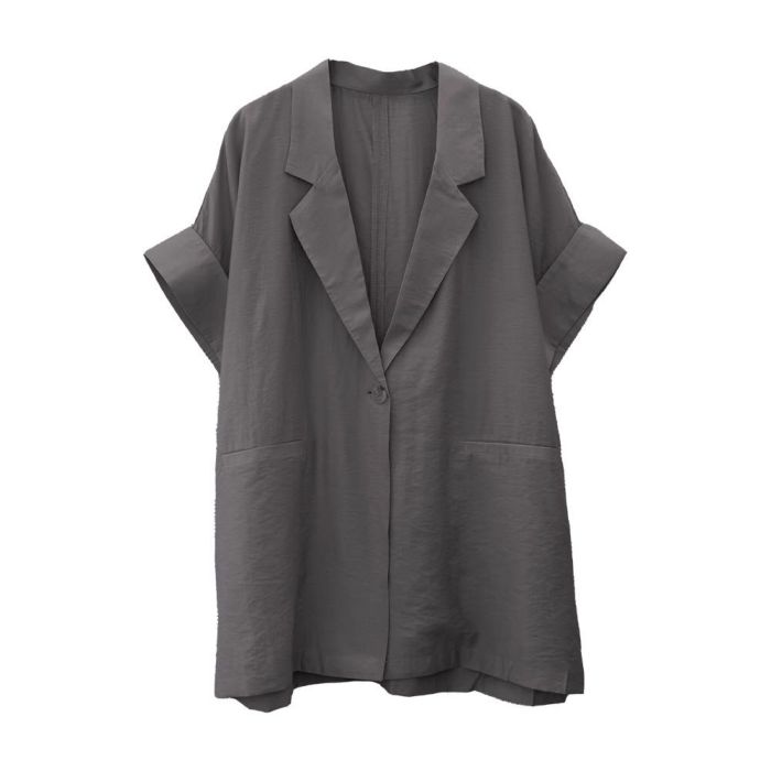 カーディガンが似合わないので、他の羽織りものが欲しく、このジャケットを購入しました。 とても軽くてさらっと着ることができます。 お尻も隠れるので、スタイルを気にせずに済むのでお気に入りです。 黒も購入して、両方ヘビロテしてます。