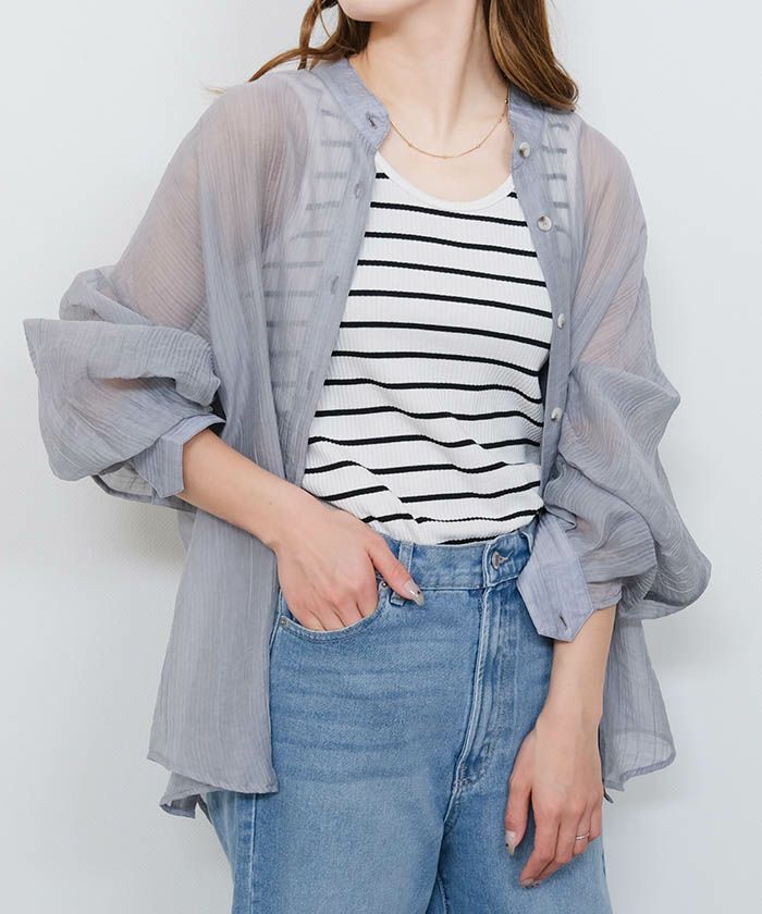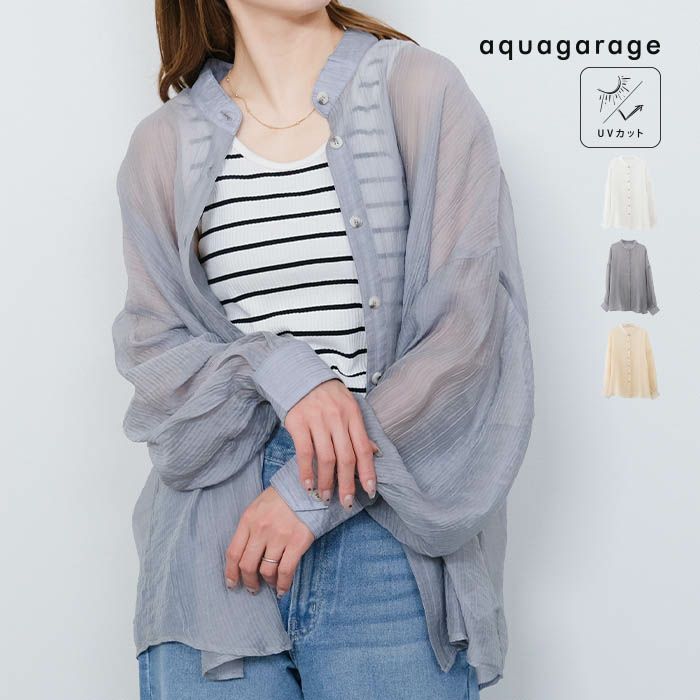 送料無料 UVカットバンドカラーシアーシャツ レディース 春 秋 M ≪ゆうメール便配送10・代引不可≫|アクアガレージ aquagarage