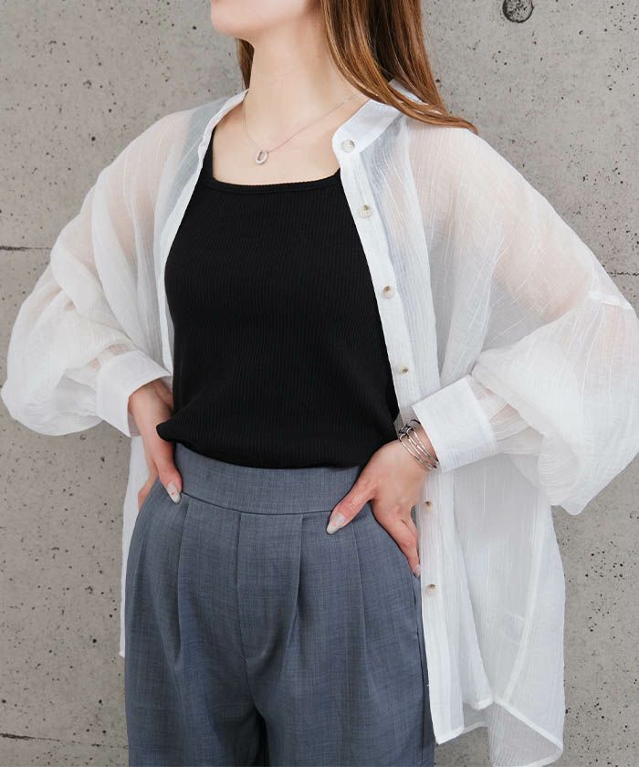 ベーシックなデザインなので普段のスタイルに合わせるだけで涼し気なムードに仕上がります。