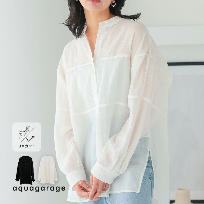 送料無料 フロント切り替えバンドカラーシャツ 春 夏 秋 ≪ゆうメール便配送20・代引不可≫| アクアガレージ aquagarage