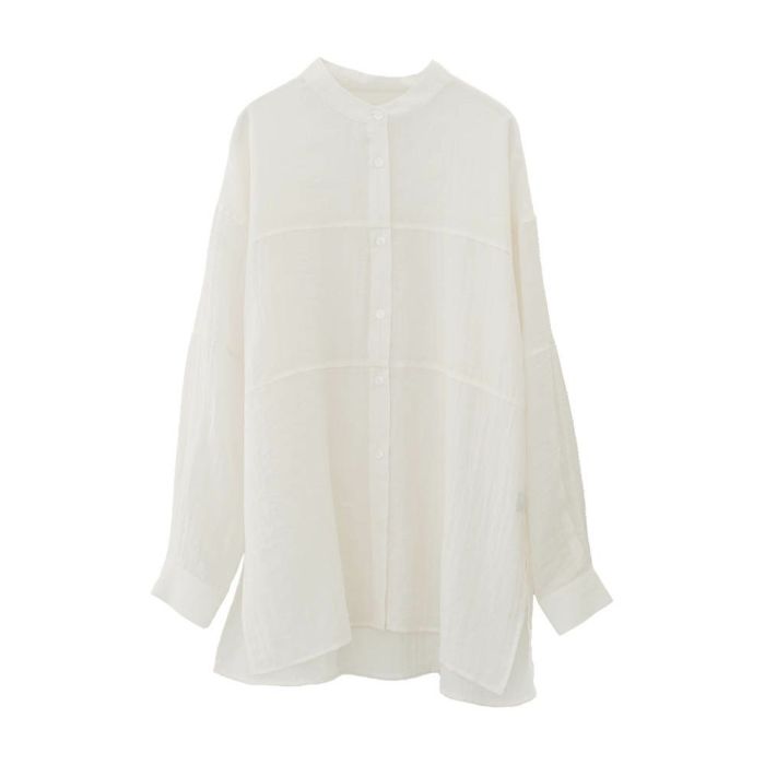 • 上品な光沢とシアー感のあるフロント切り替えバンドカラーシャツ