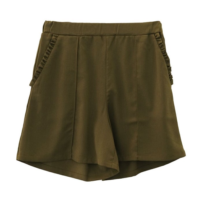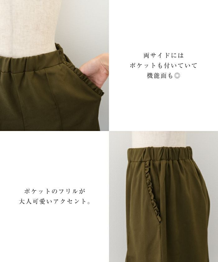 ポケットのフリルが女性らしい印象でコーデのアクセントに。