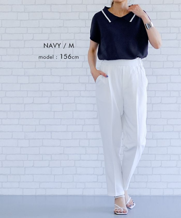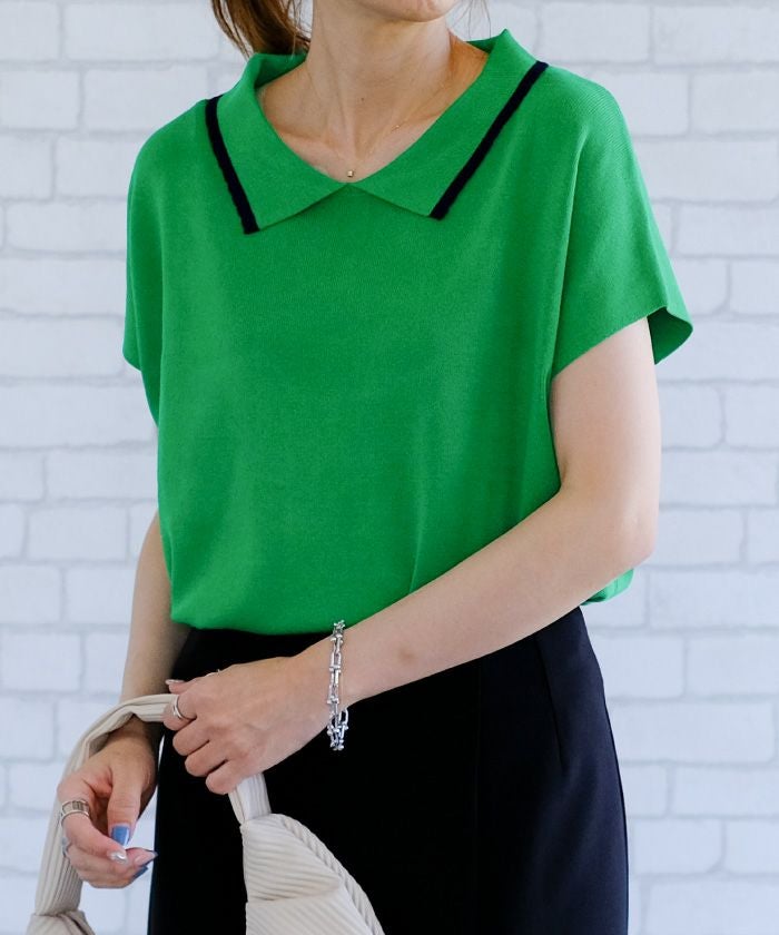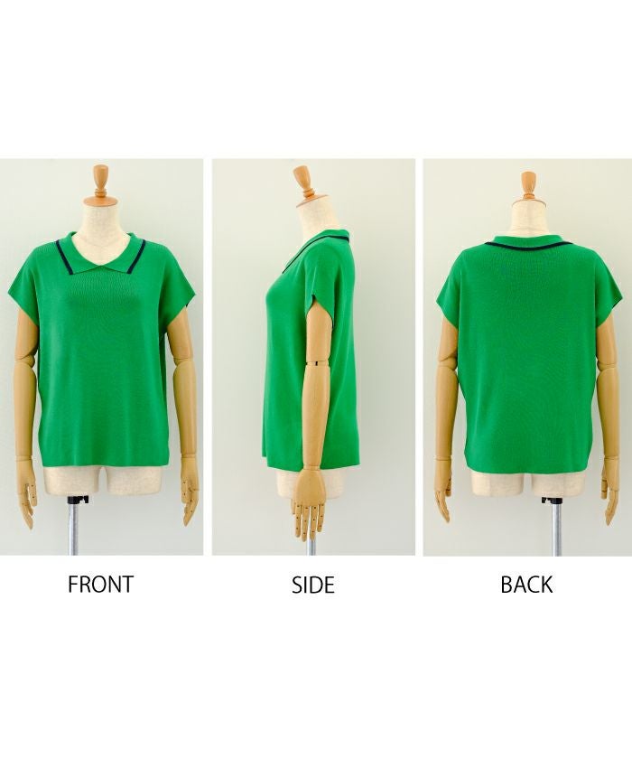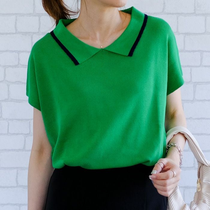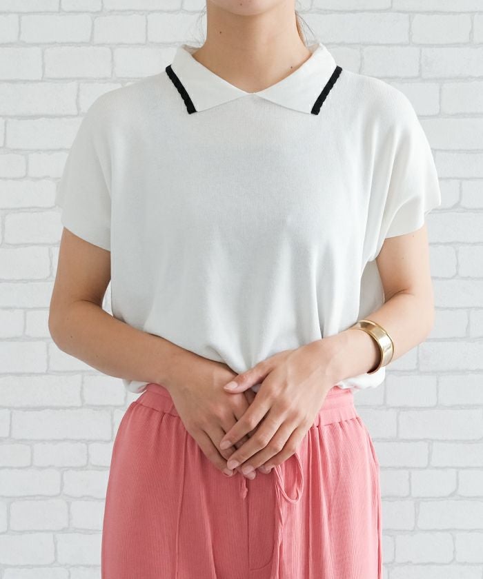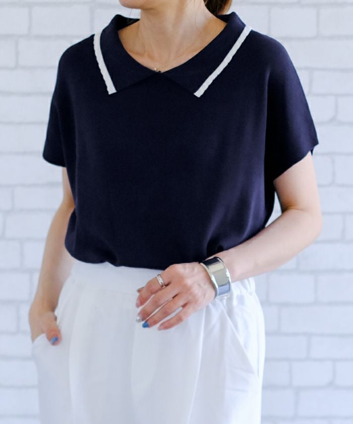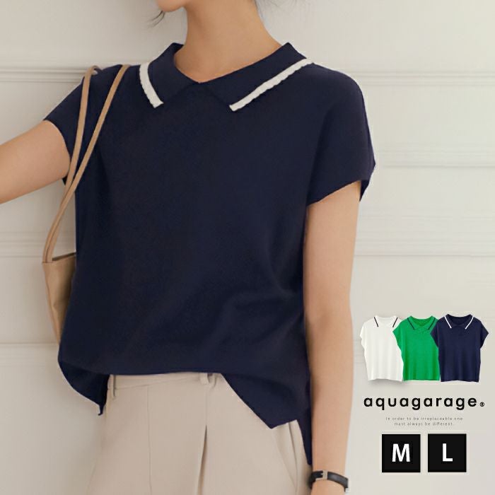 送料無料 配色ライン襟付きサマーニット レディース 春 夏 半袖 ≪ゆうメール便配送10・代引不可≫ | アクアガレージ aquagarage