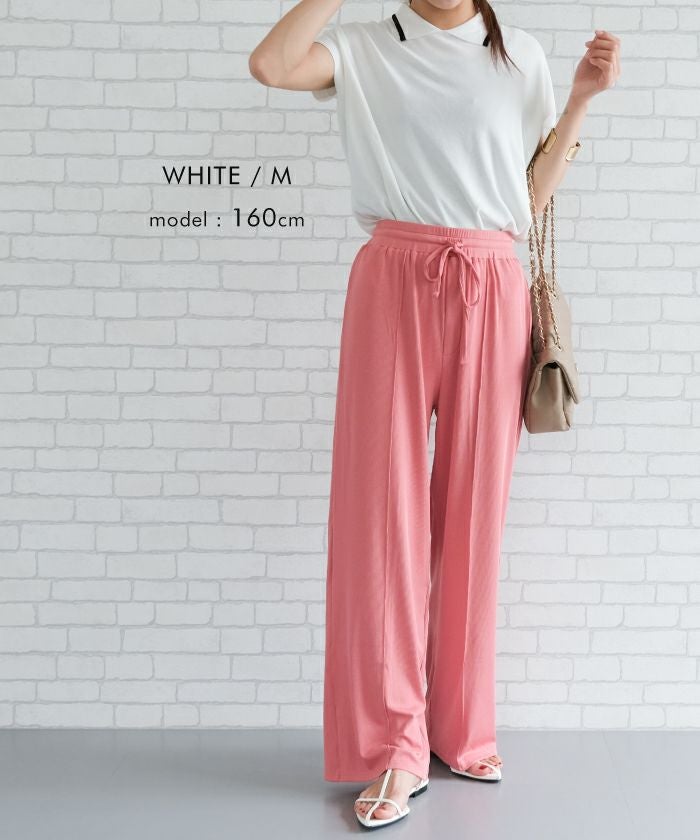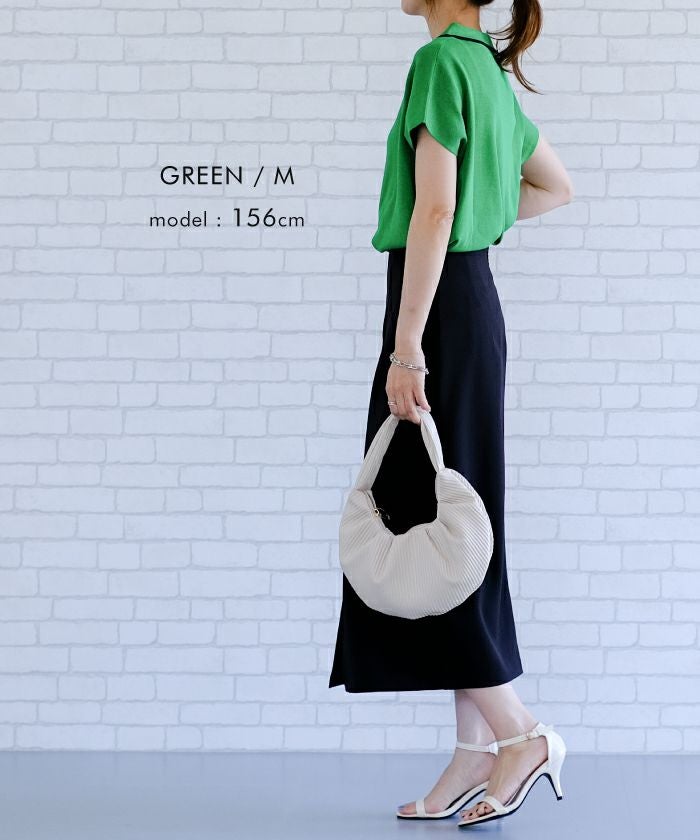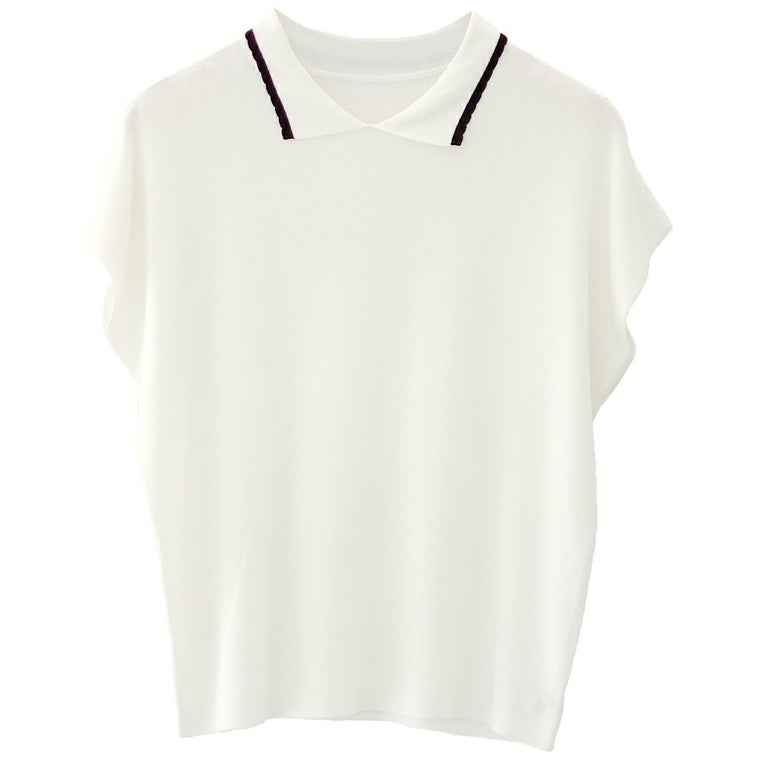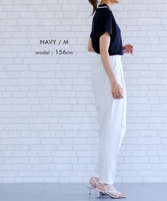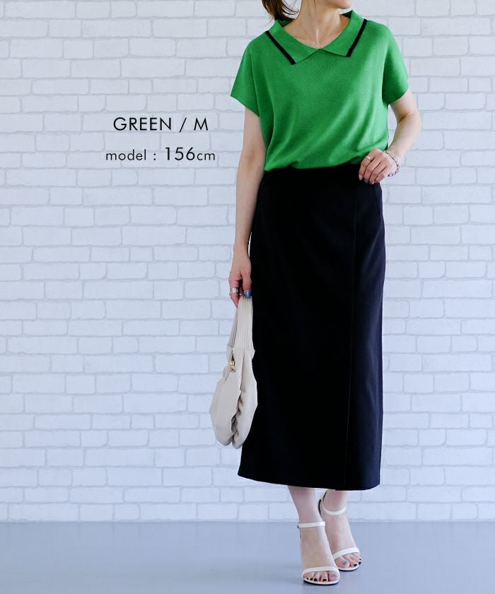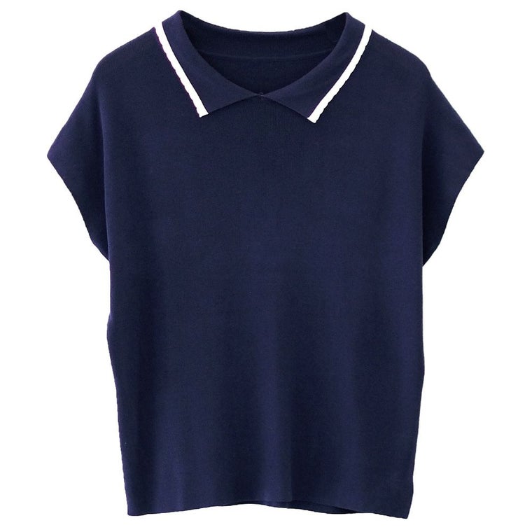 送料無料 配色ライン襟付きサマーニット レディース 春 夏 半袖 ≪ゆうメール便配送10・代引不可≫ | アクアガレージ aquagarage