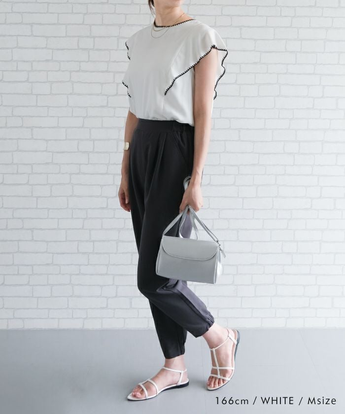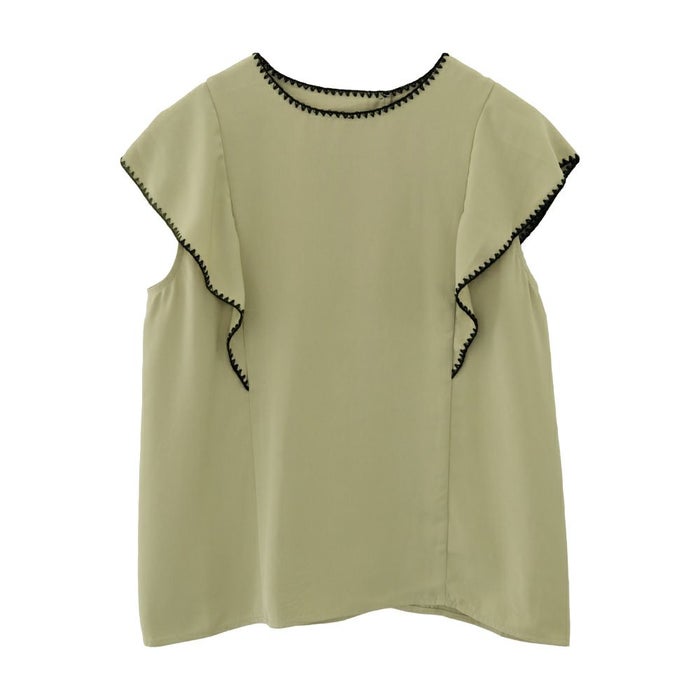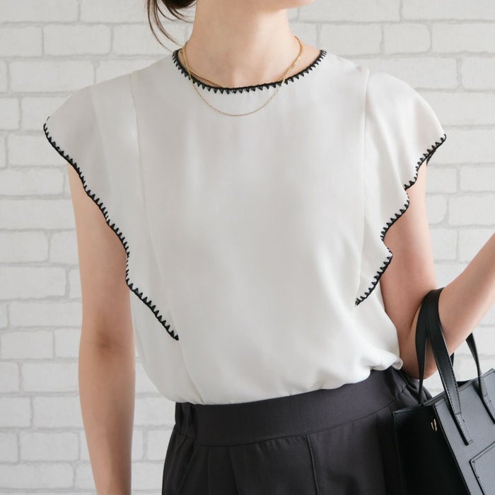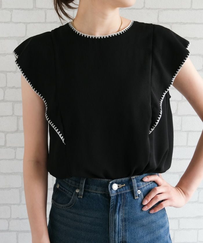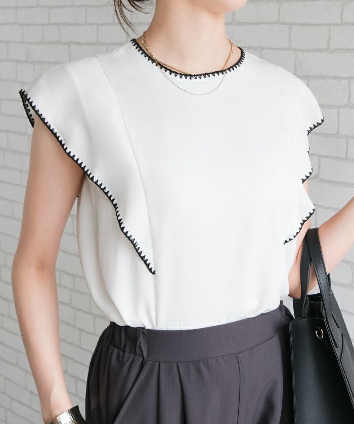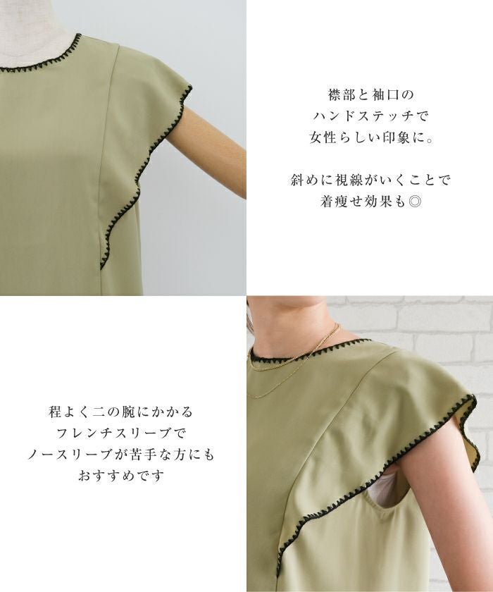 • ステッチの縁取りがキュートなレンチスリーブブラウス