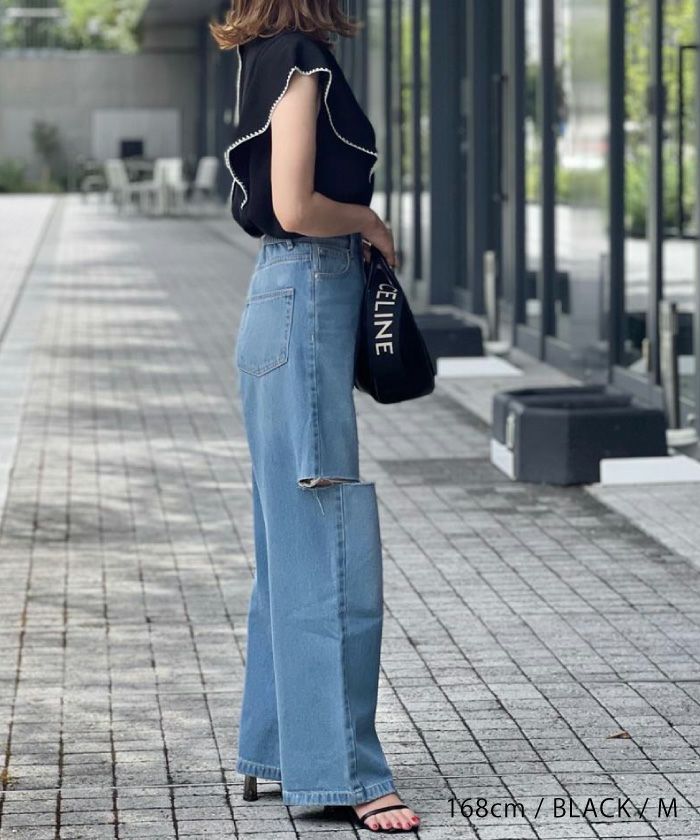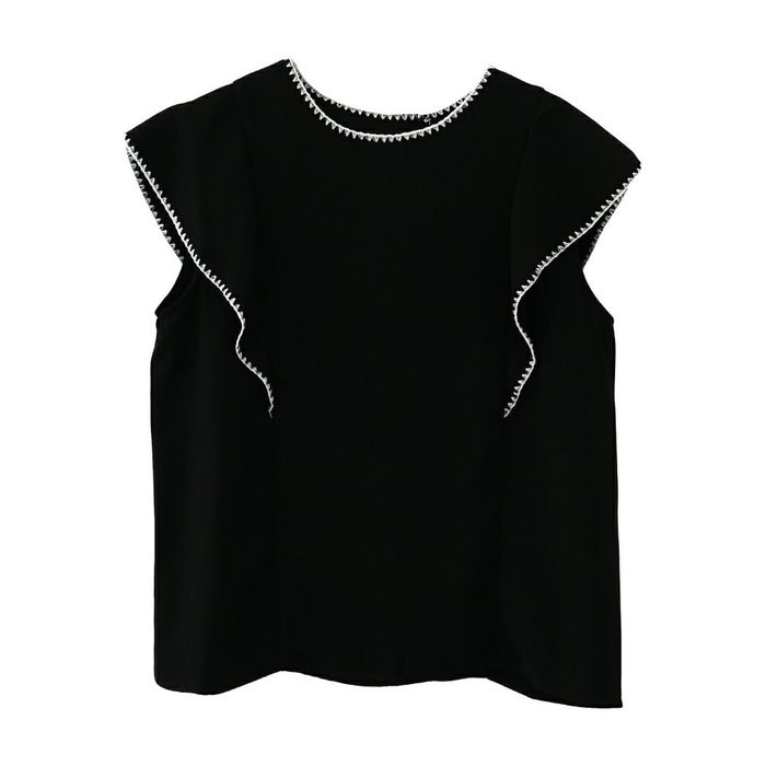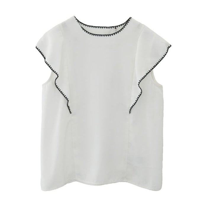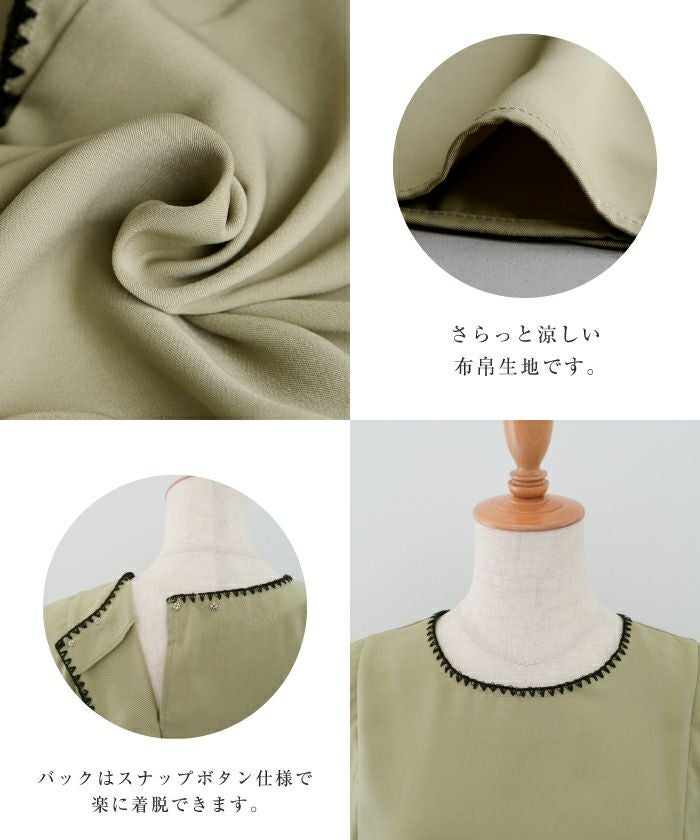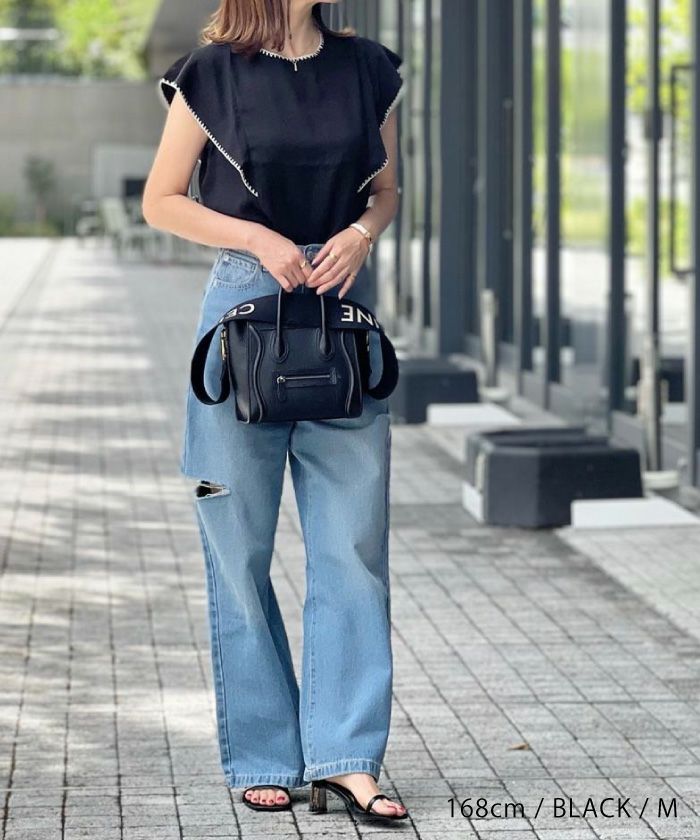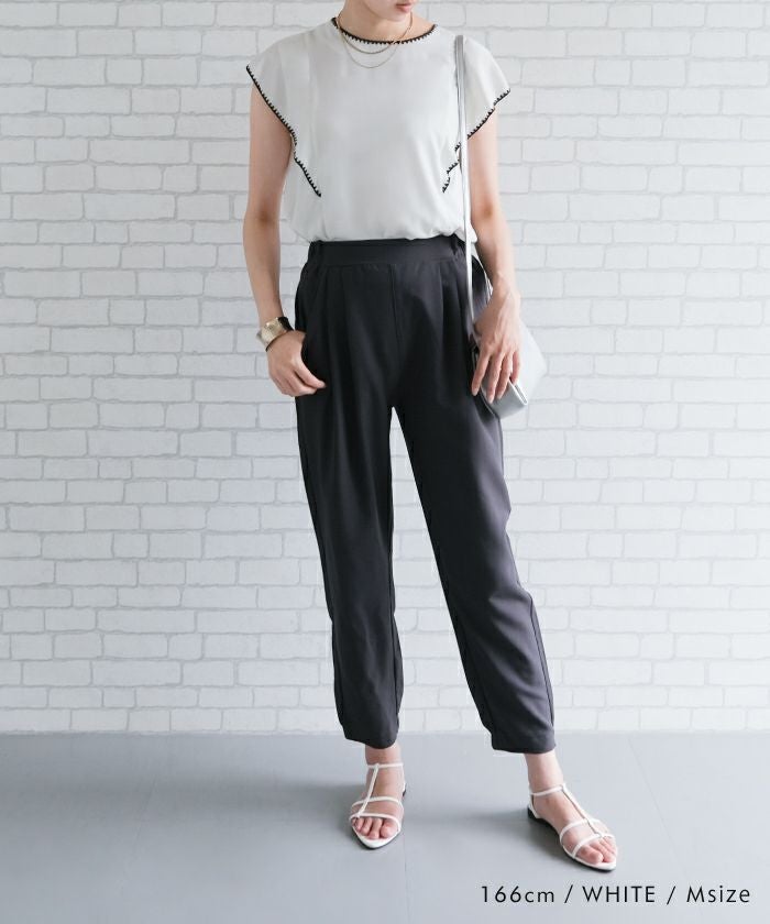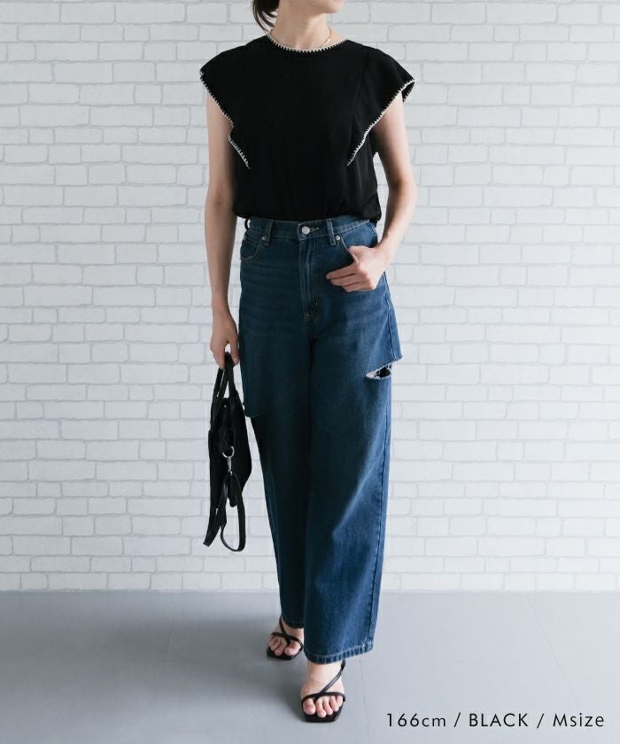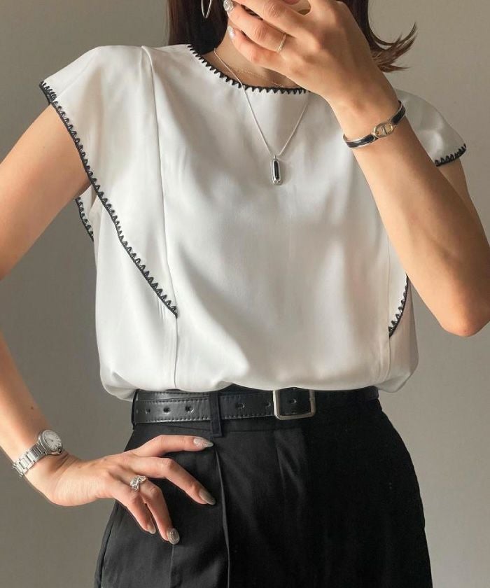 送料無料 ステッチフレンチスリーブブラウス 春 夏 秋 M L レディース ≪ゆうメール便配送10・代引不可≫ | | アクアガレージ aquagarage