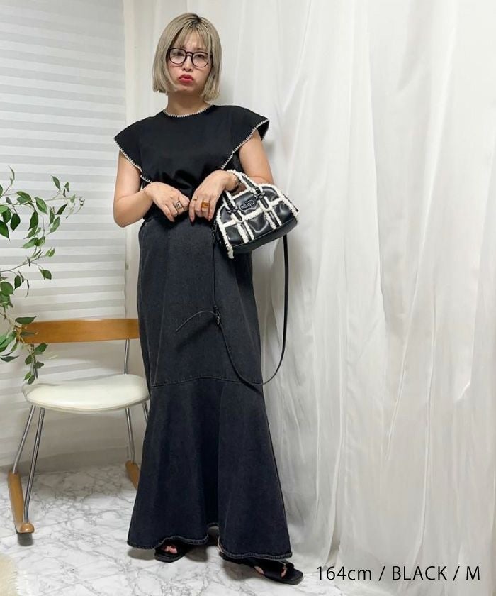 程よく二の腕にかかるフレンチスリーブでノースリーブが苦手な方にもおすすめ。