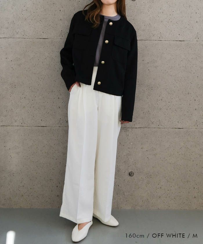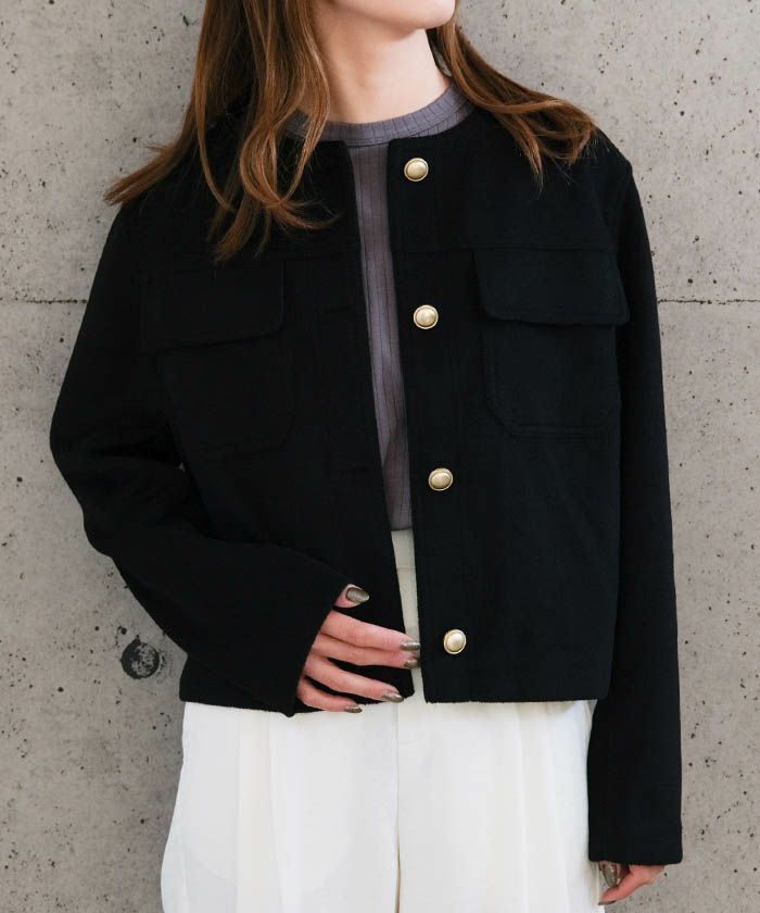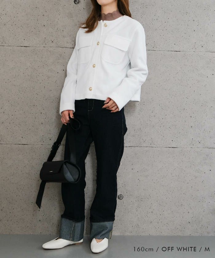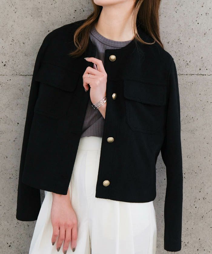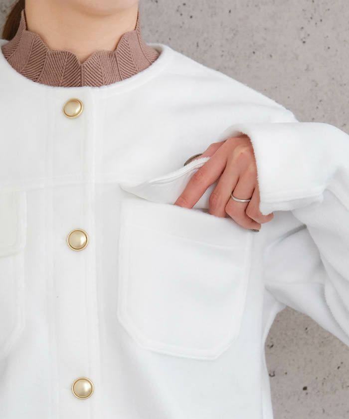 • やさしい肌触りで滑らかなタッチのノーカラージャケット
