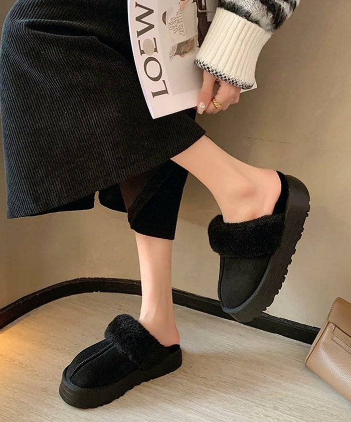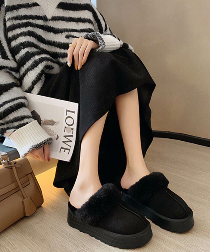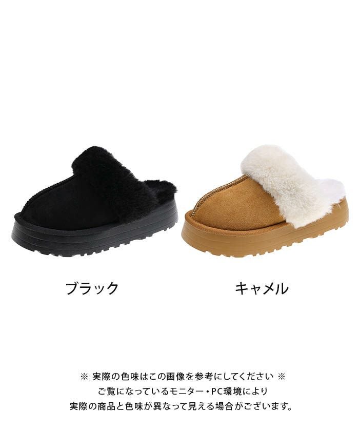 • 流行を足元に。厚底ボリュームフェイクムートンスリッポン