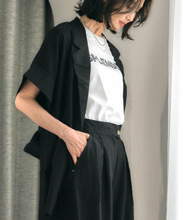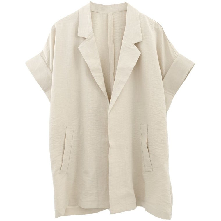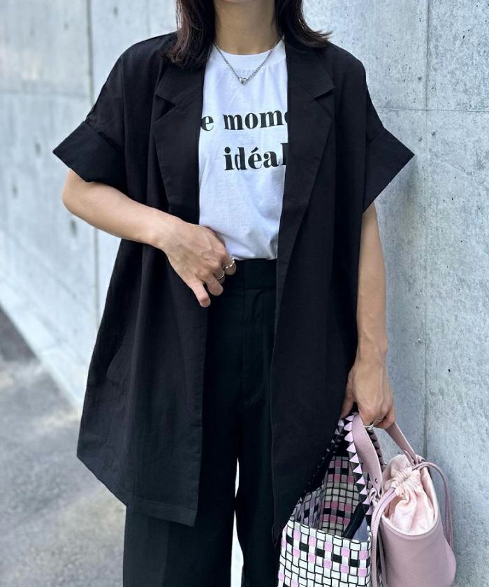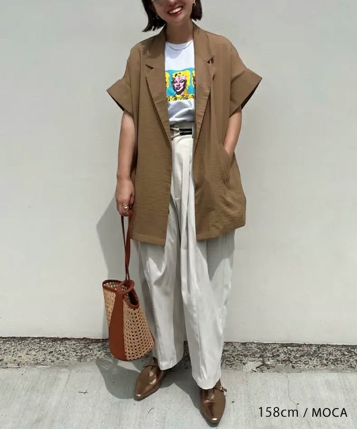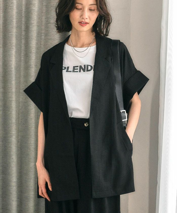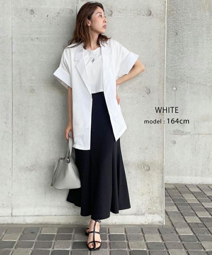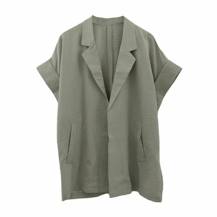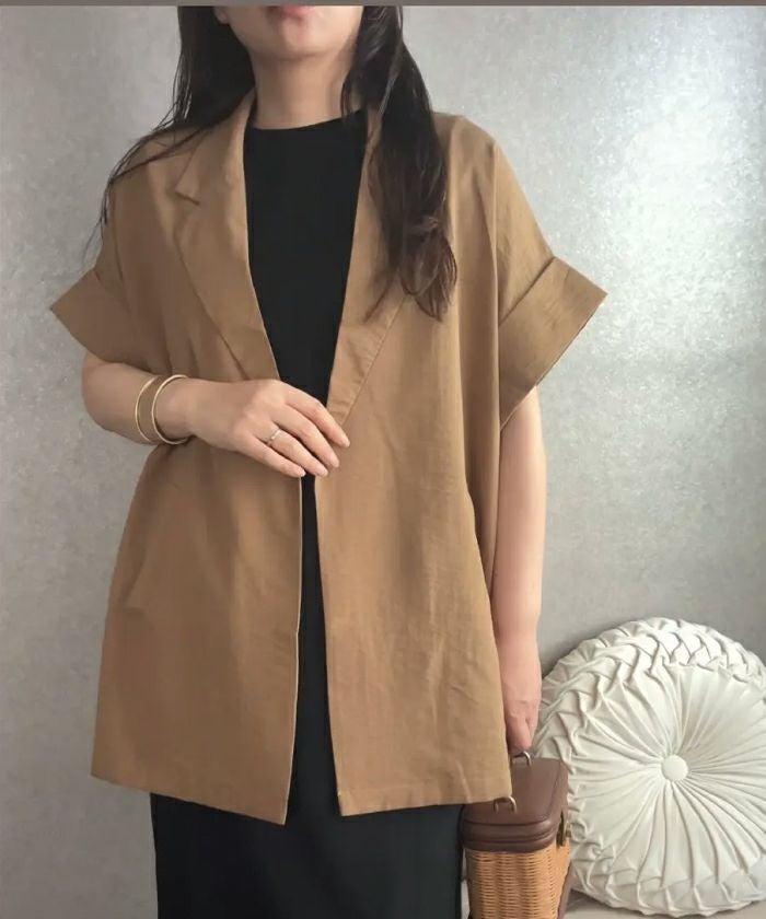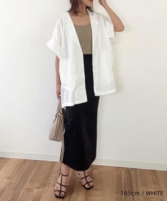 羽織るだけでこなれ見えが叶う、ボタンレスの半袖シャツジャケット。