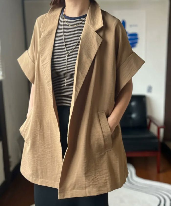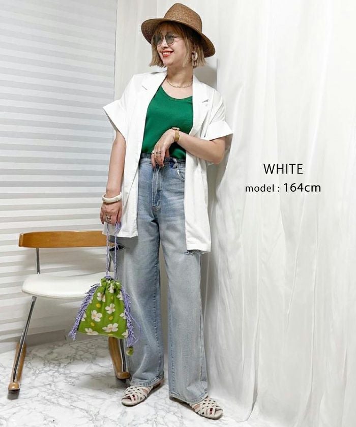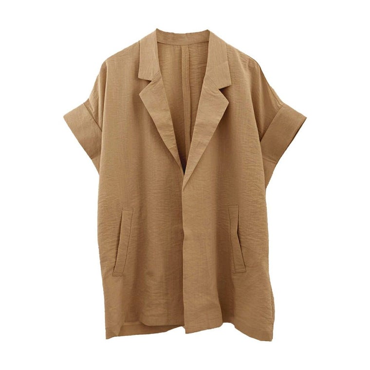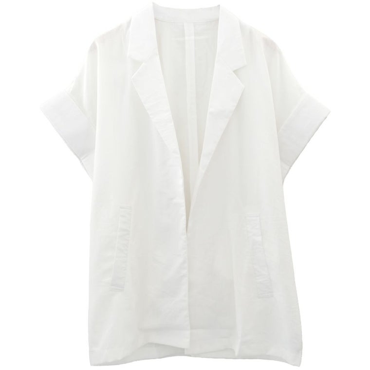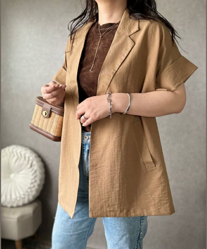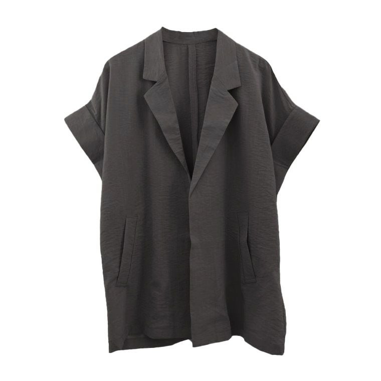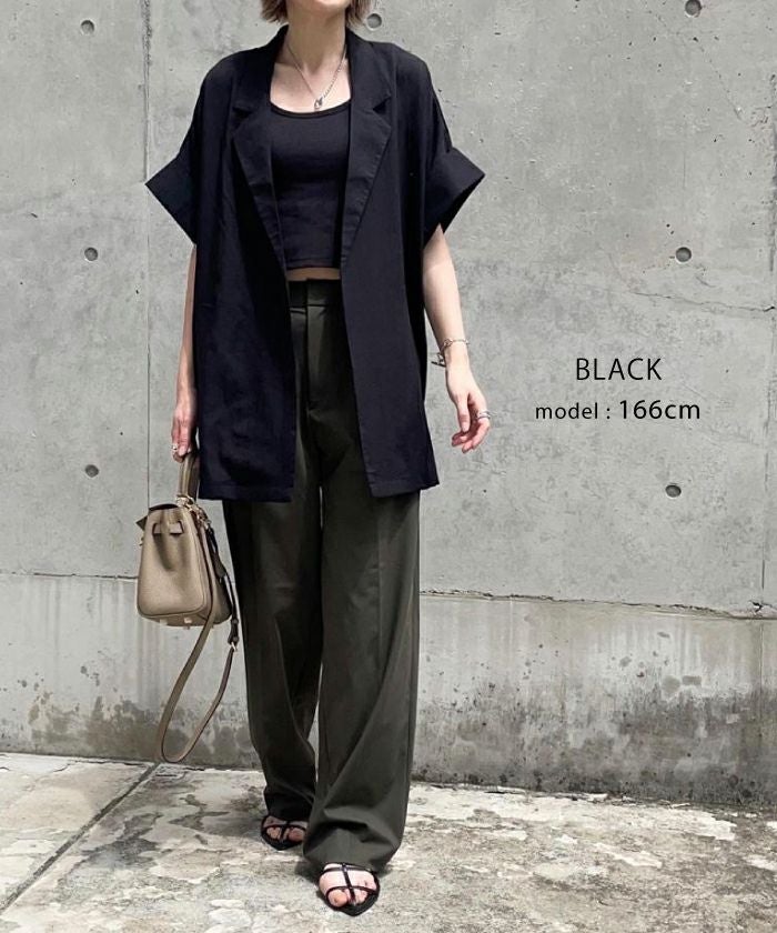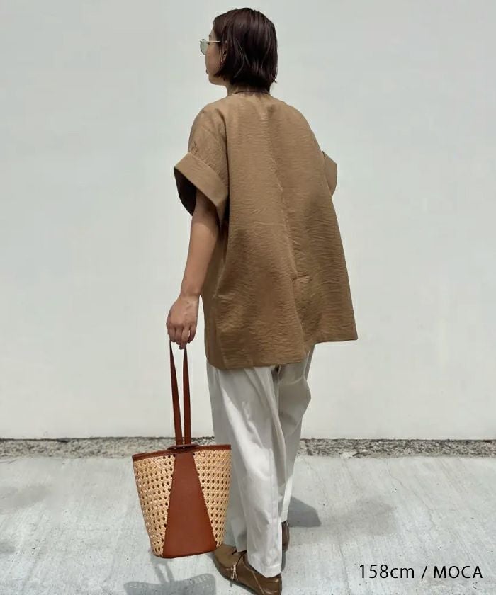 羽織るだけでこなれ見えが叶う、ボタンレスの半袖シャツジャケット。