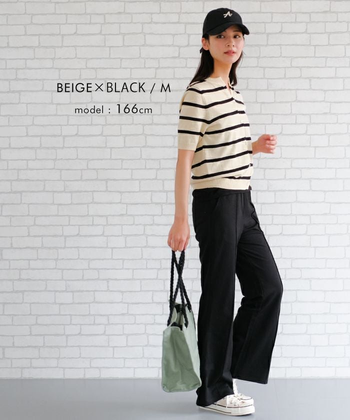 • カジュアルにもきれいめにも着られる半袖サマーニットトップス