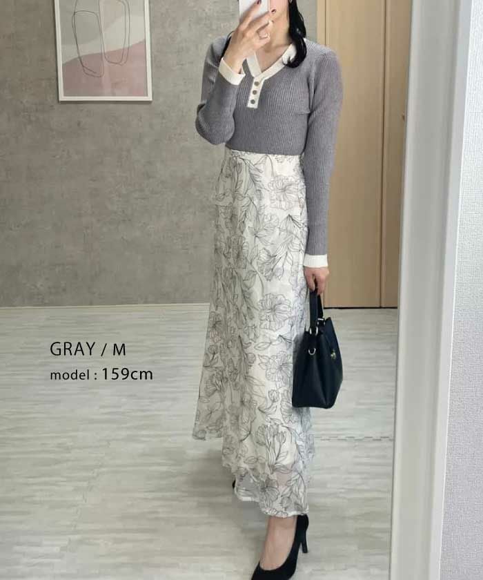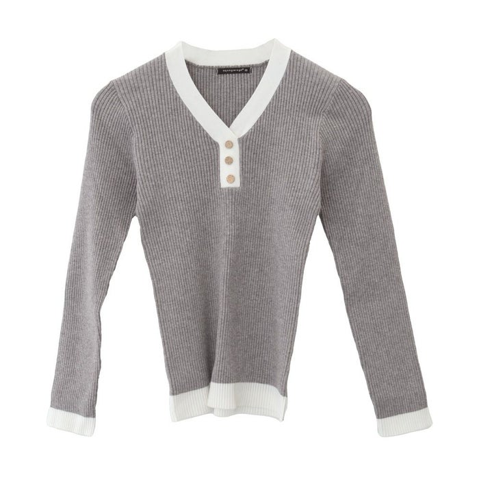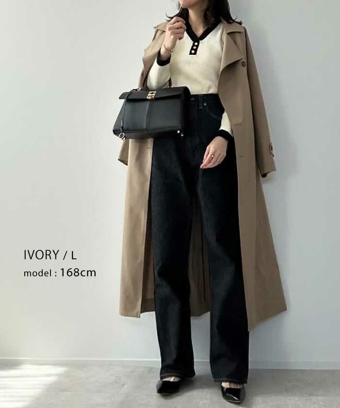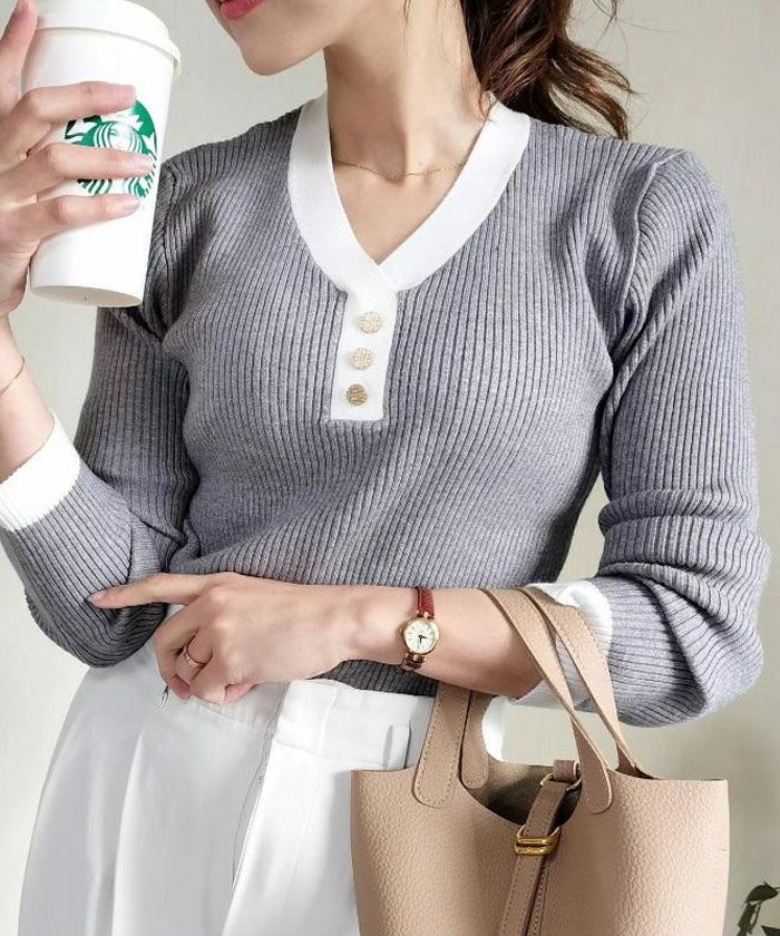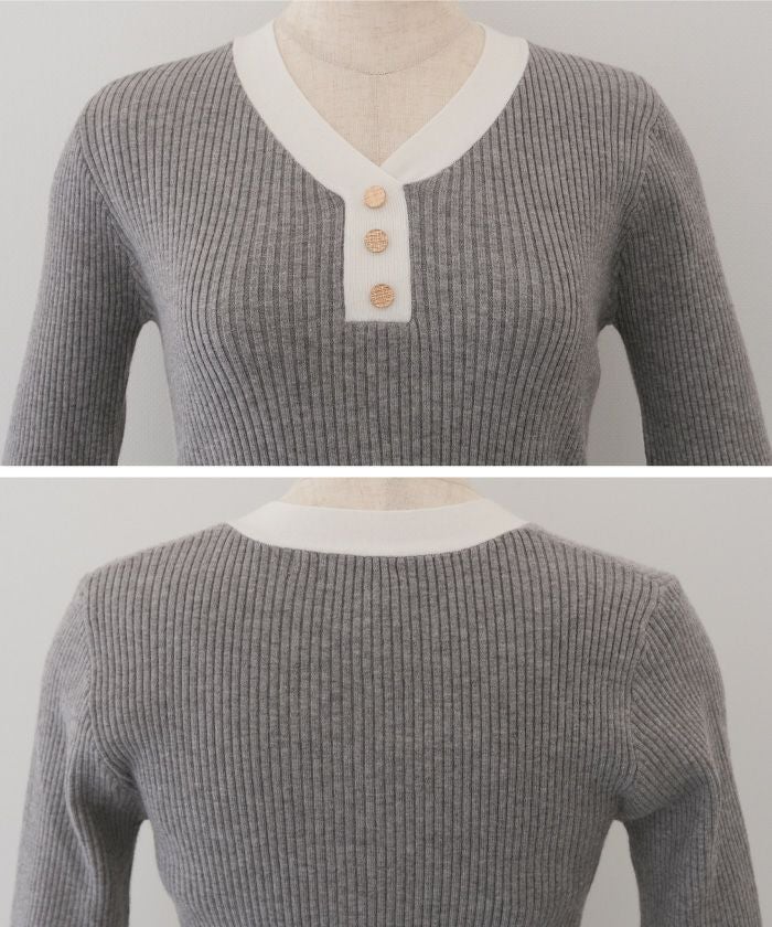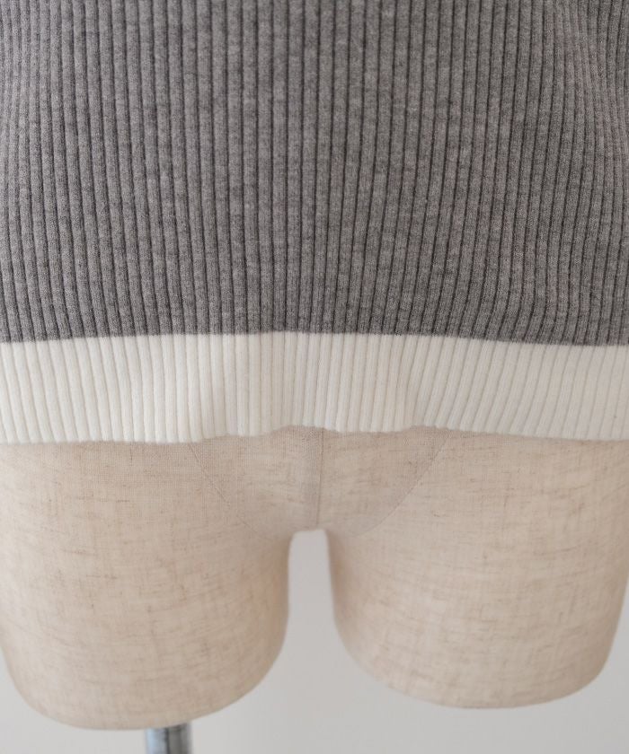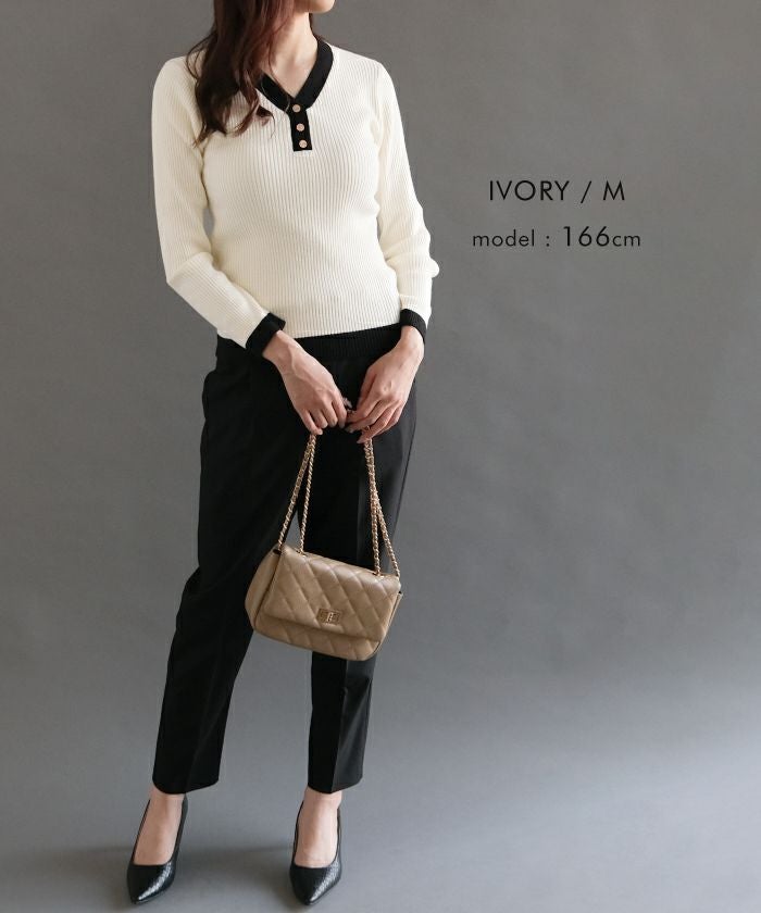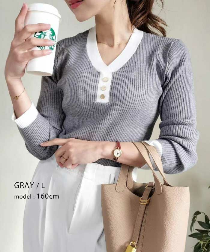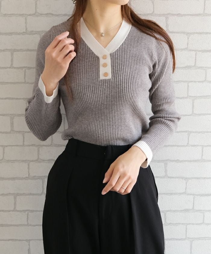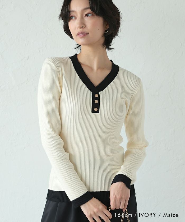• フェミニンながらも大人っぽい印象♪バイカラーVネックリブニットトップス
