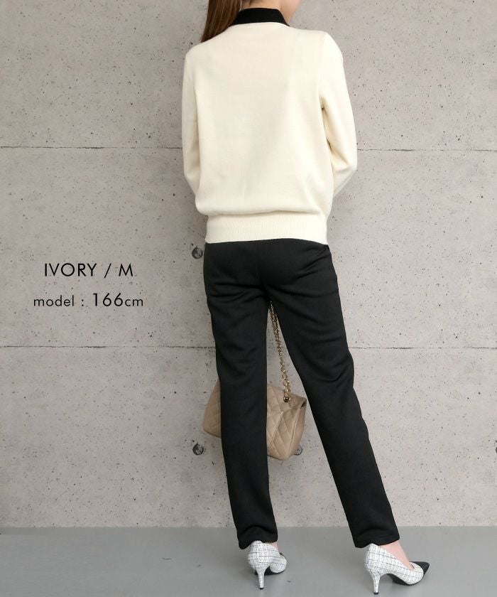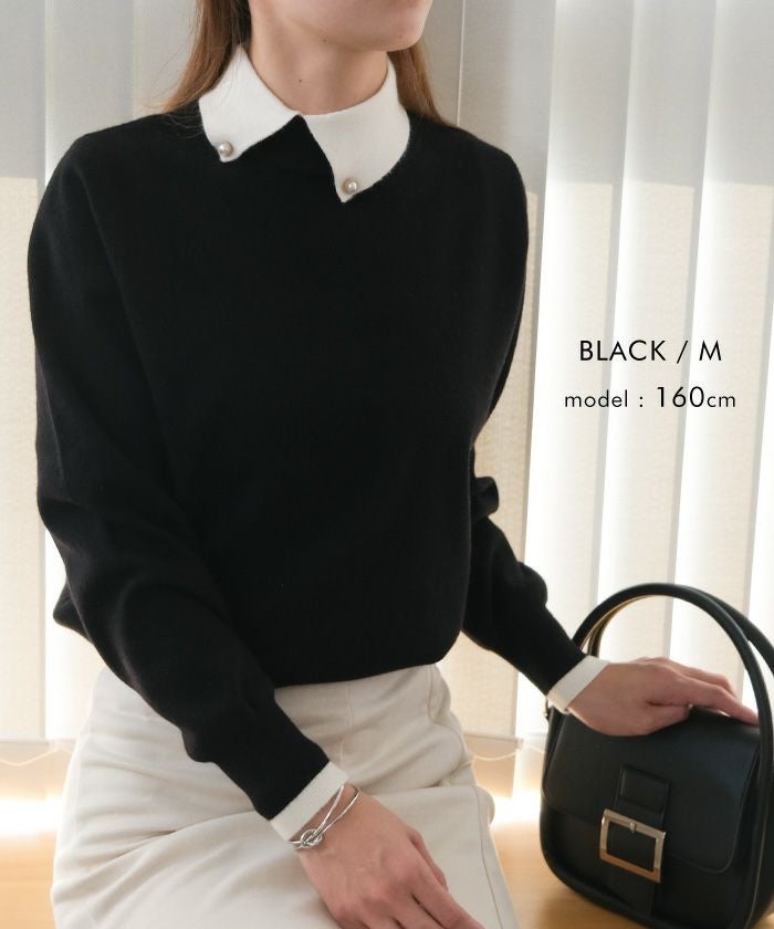 送料無料 パール調ボタン付き配色ニット 春 秋 冬 M L | アクアガレージ aquagarage ≪ゆうメール便配送30・代引不可≫