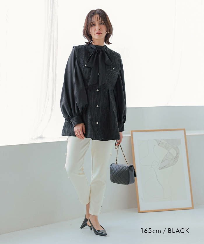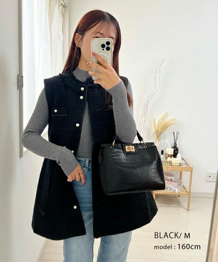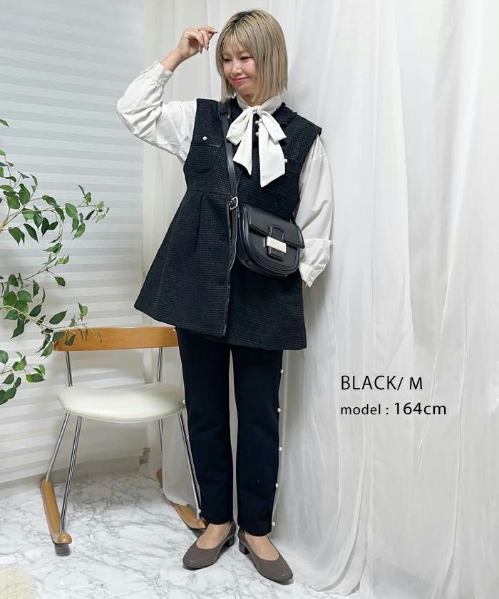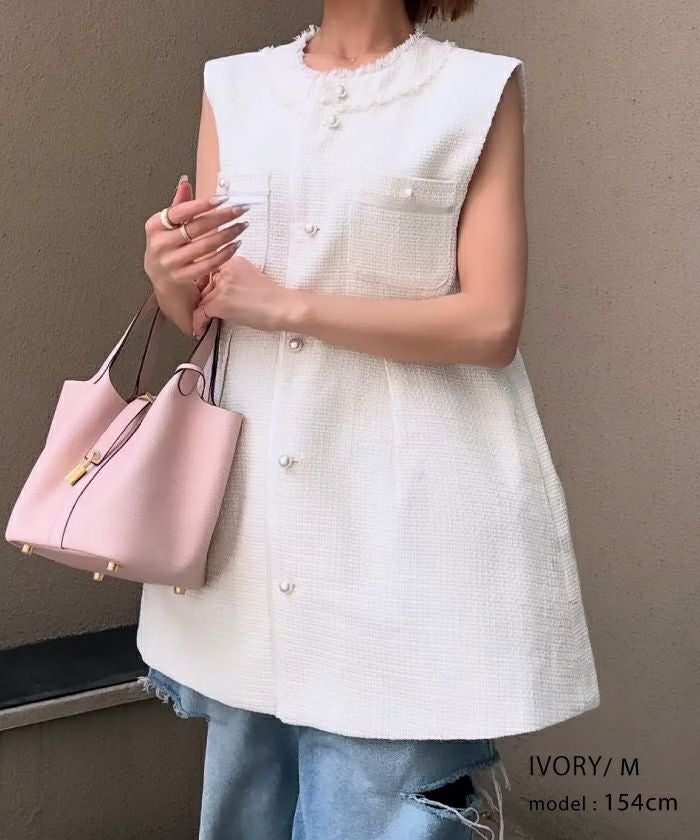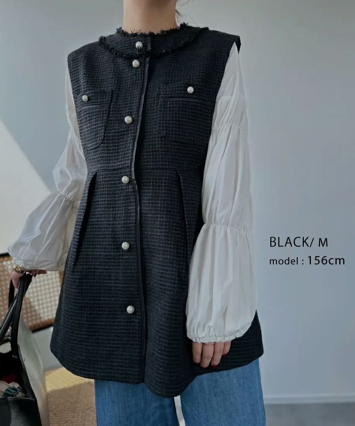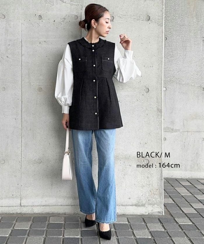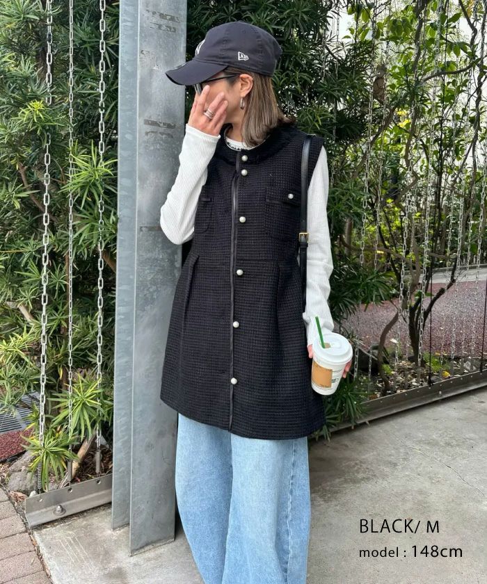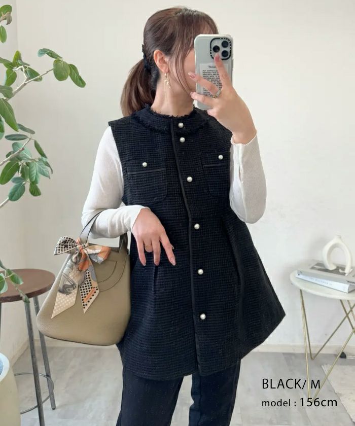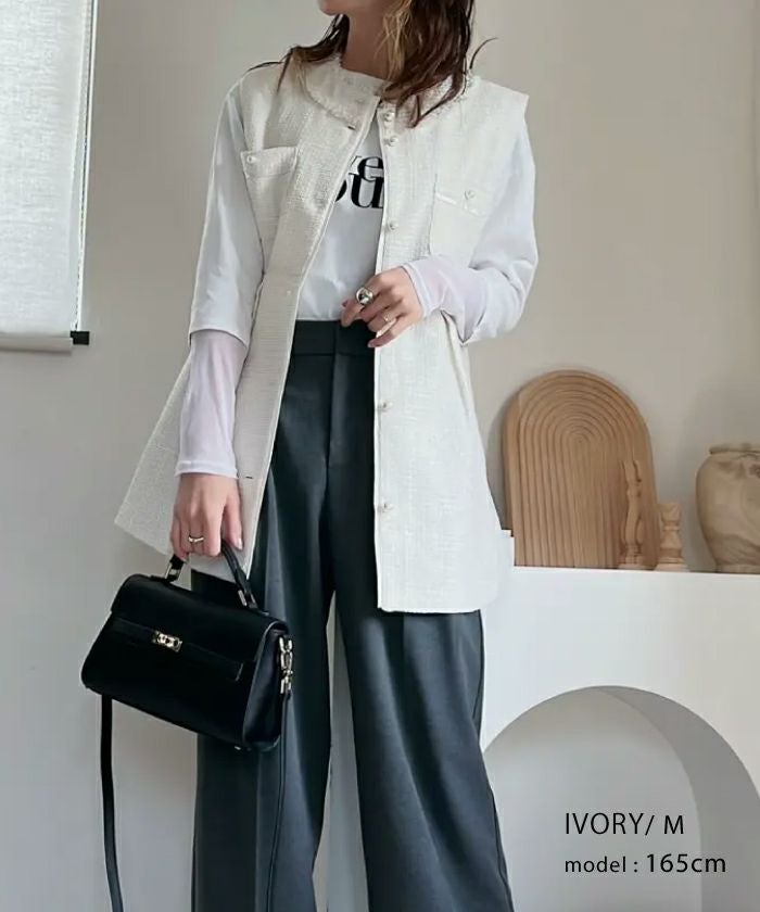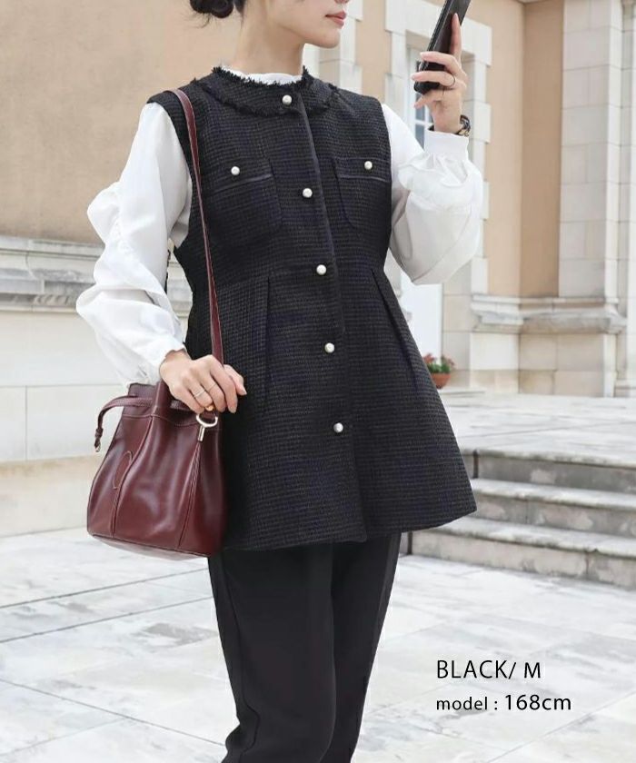• 上品なツイード素材を使用したツイードジレベスト。