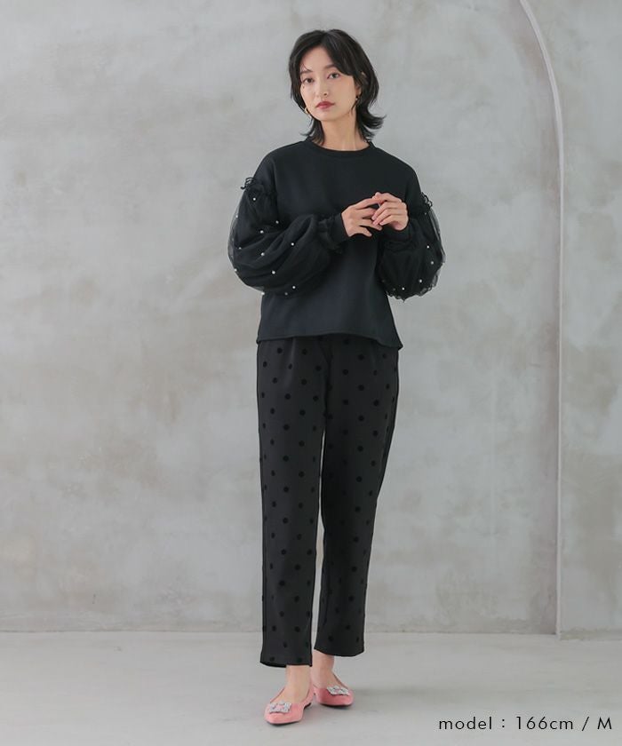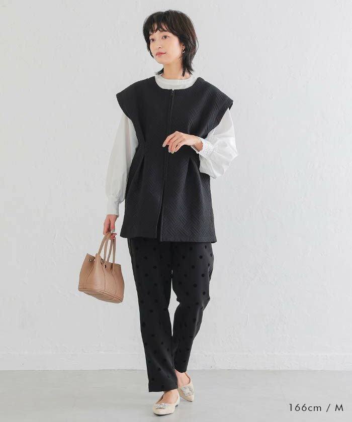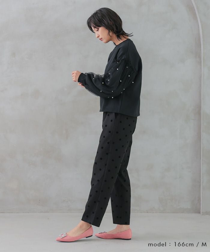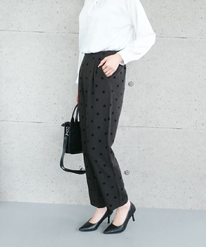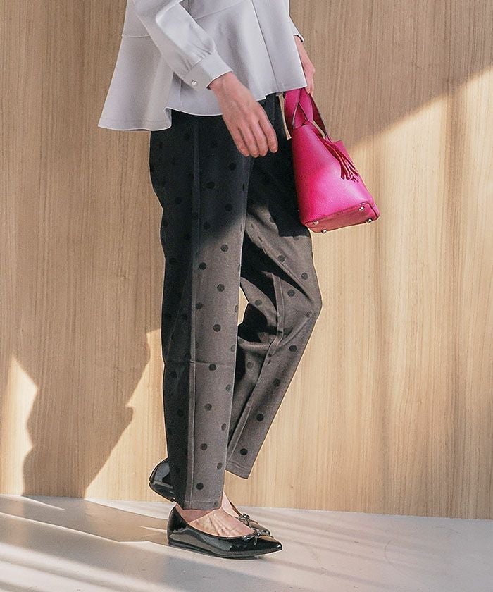 • エレガントな着こなしが完成するドット柄テーパードパンツ