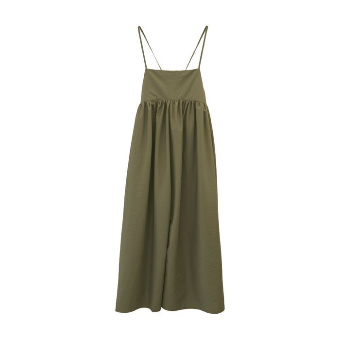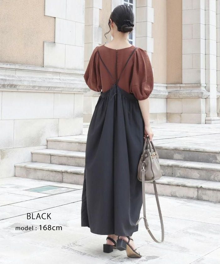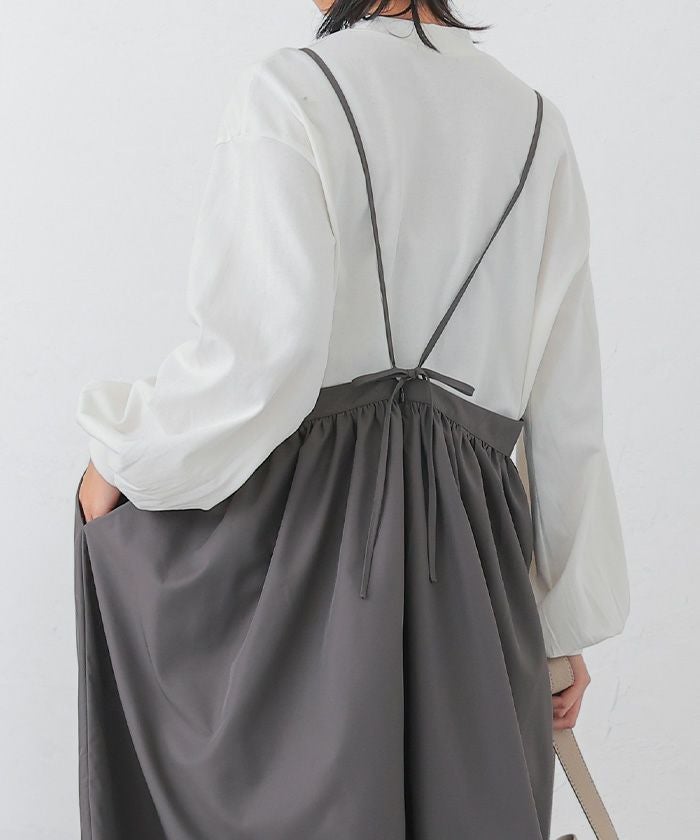 華奢な肩紐とロング丈で、大人っぽいバランスに。