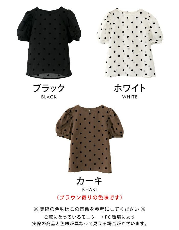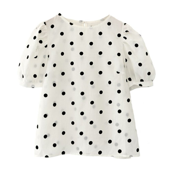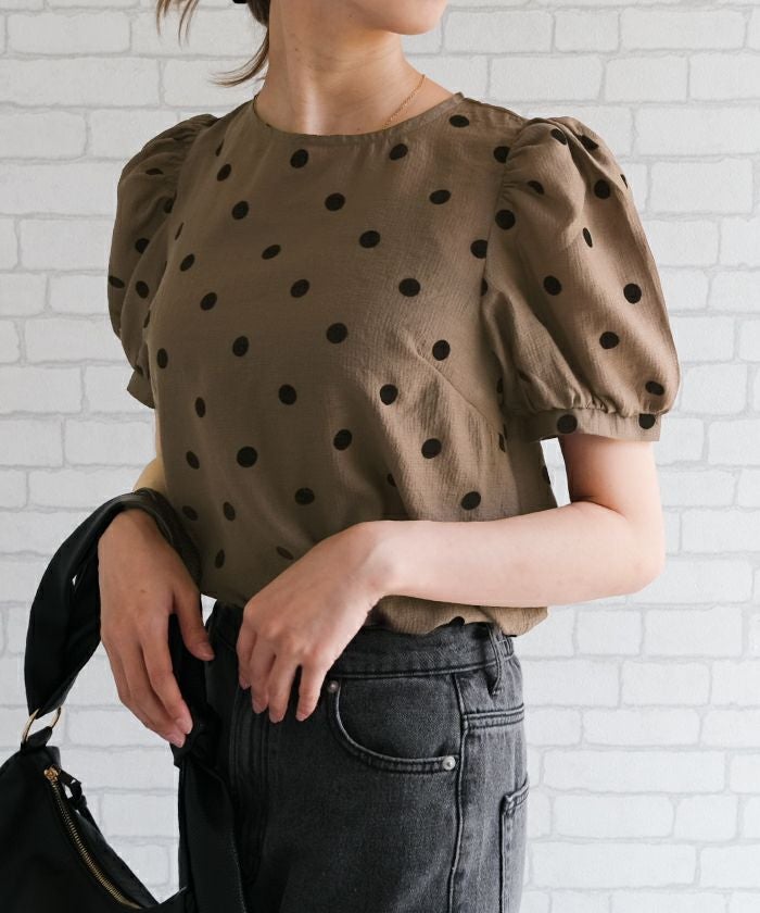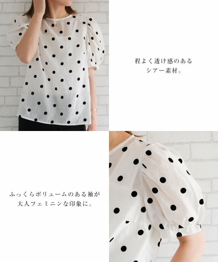 送料無料 ドット柄パフスリーブシアーブラウス 春 夏 レディース M L ≪ゆうメール便配送10・代引不可≫ | アクアガレージ aquagarage